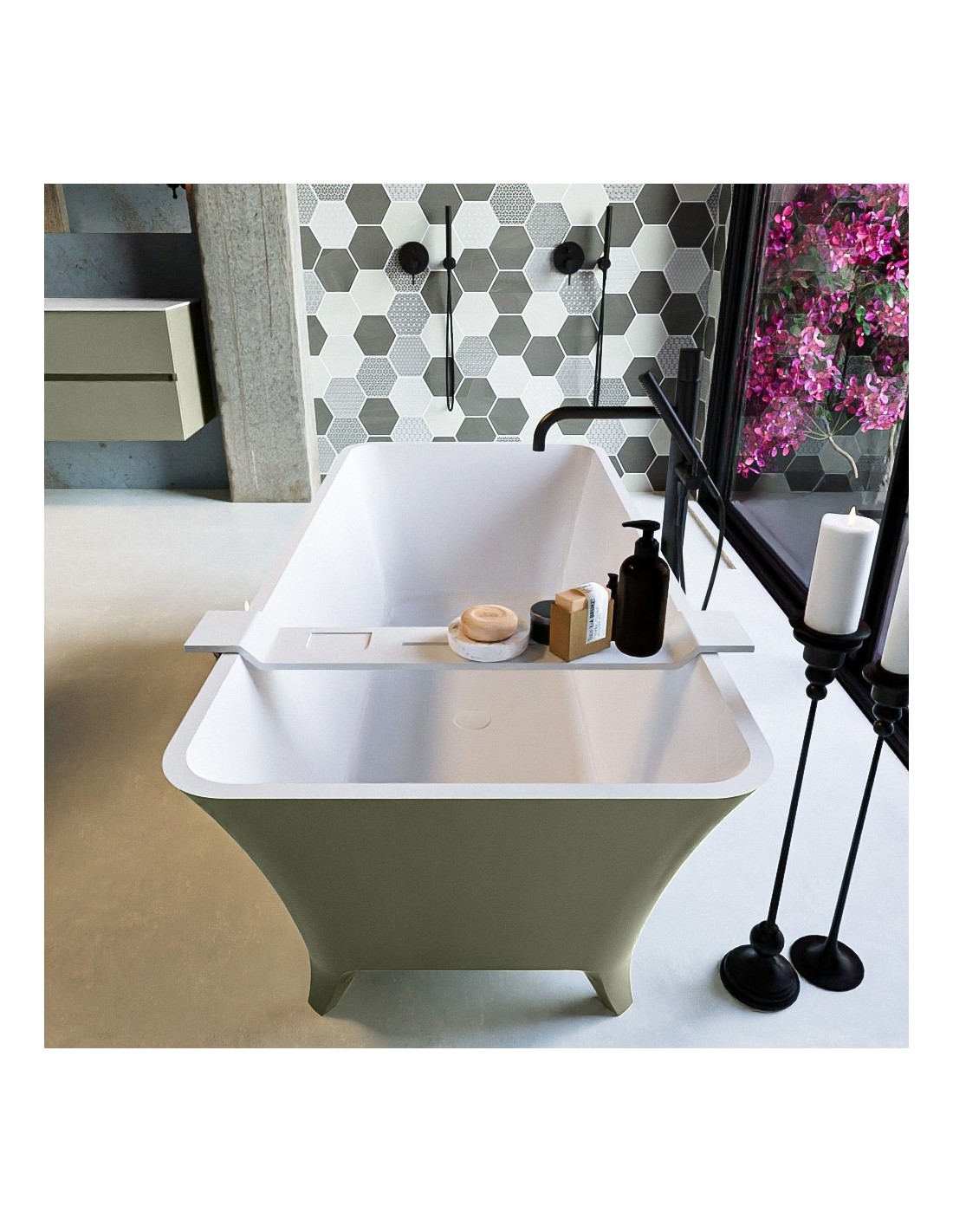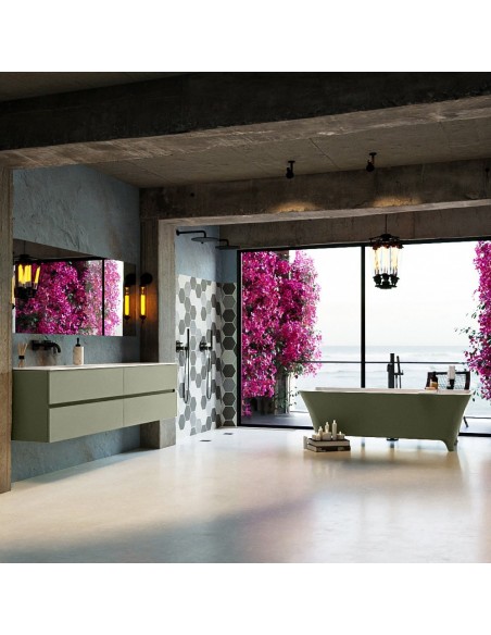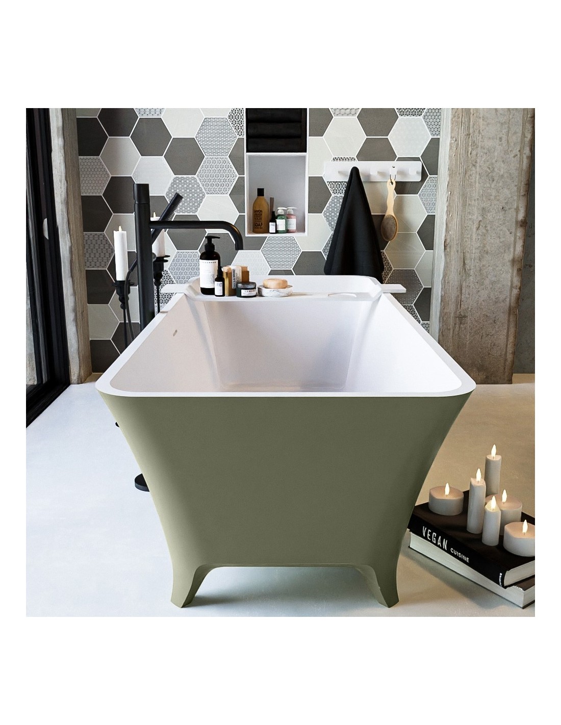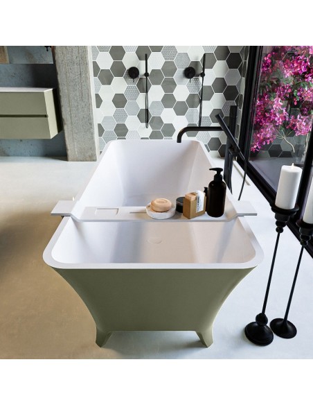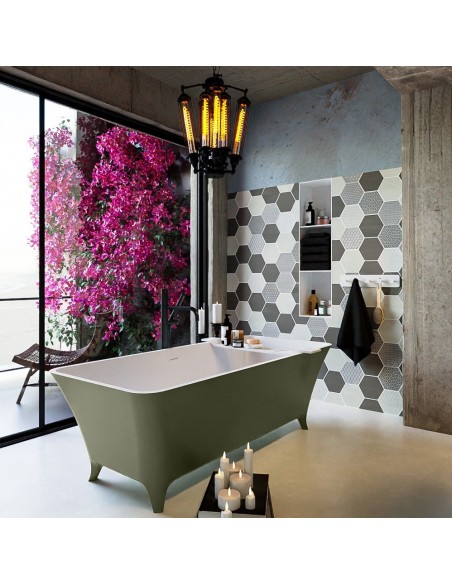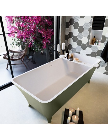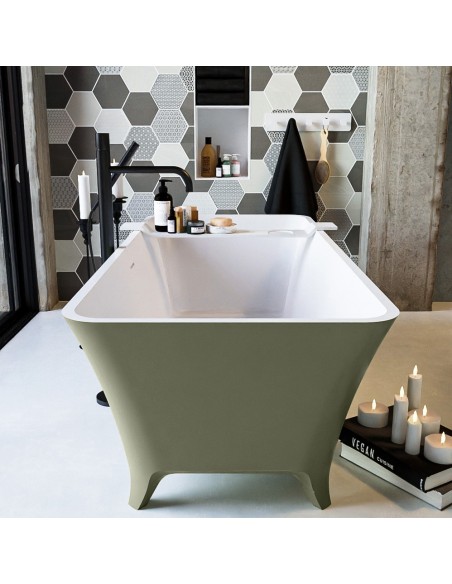 LUNDY fritstående badekar 170 x 75 cm Solid surface - Talkum/Armygrøn