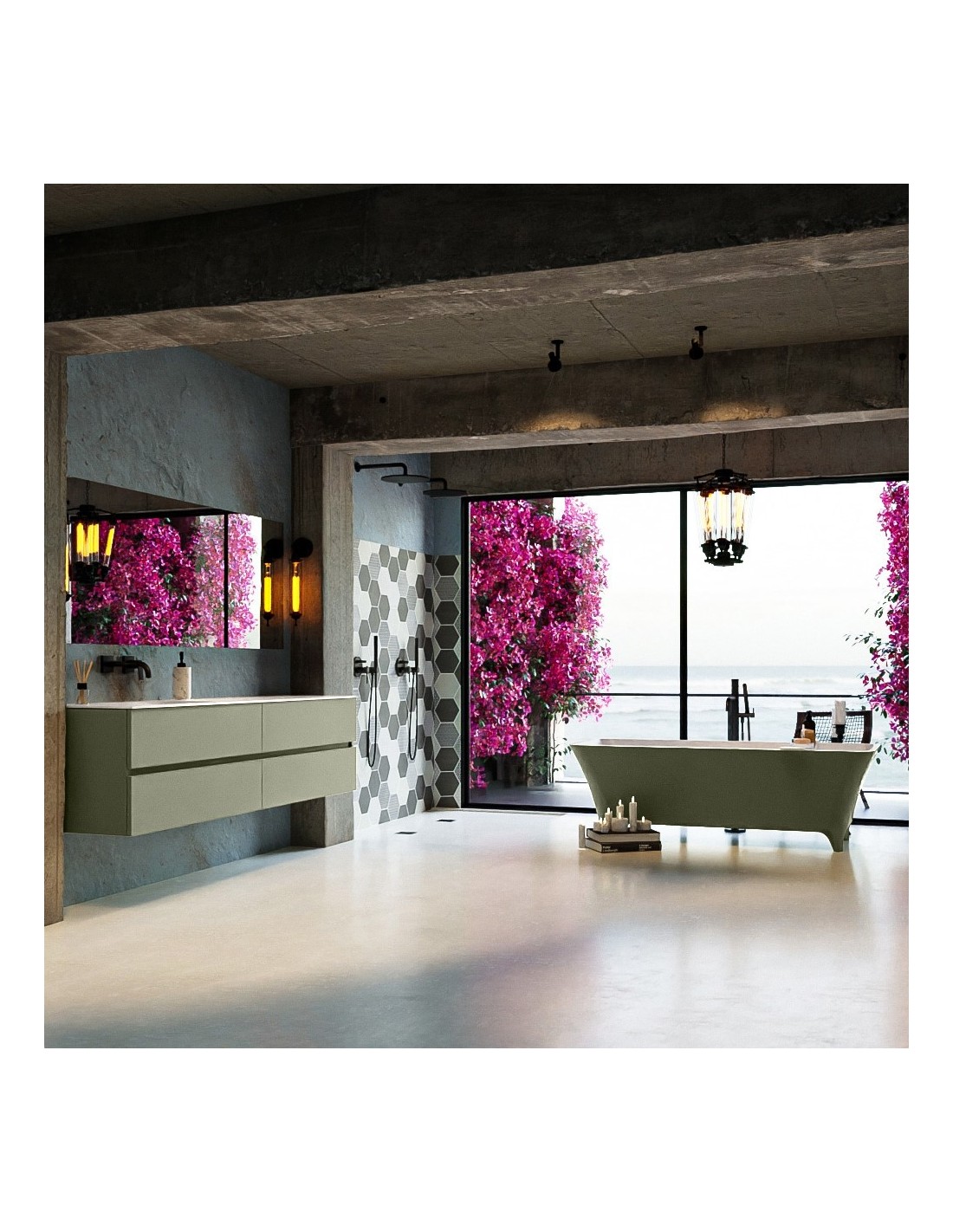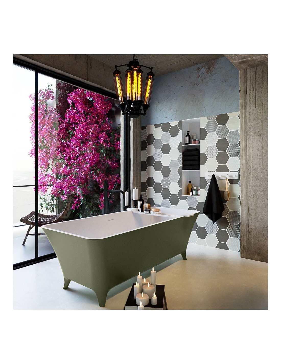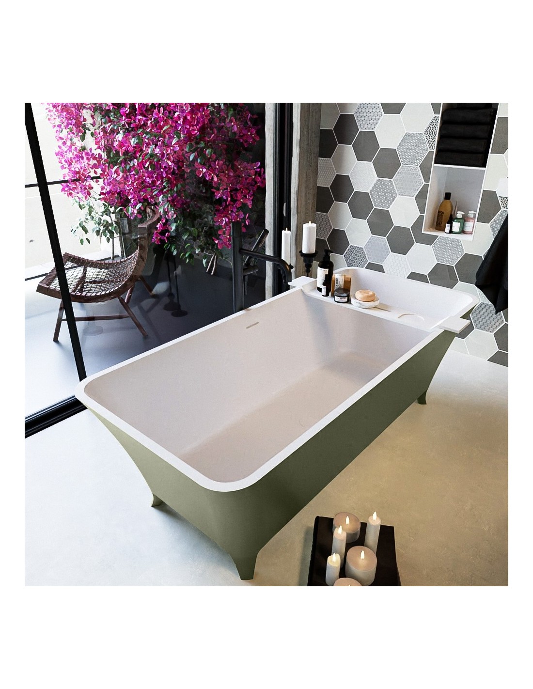 LUNDY fritstående badekar 170 x 75 cm Solid surface - Talkum/Armygrøn
