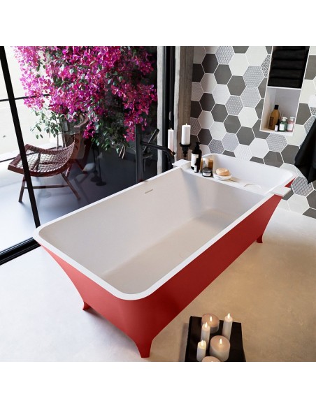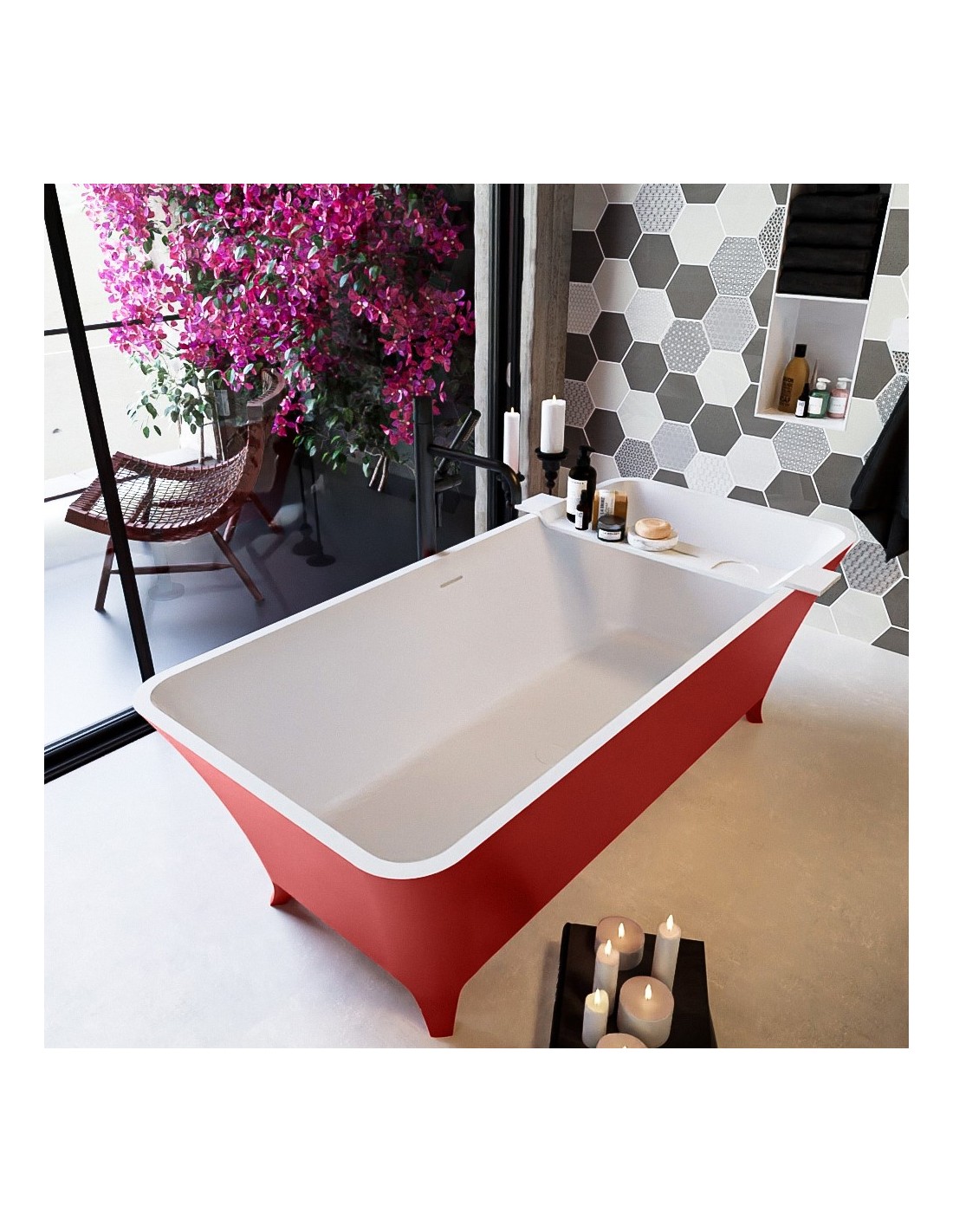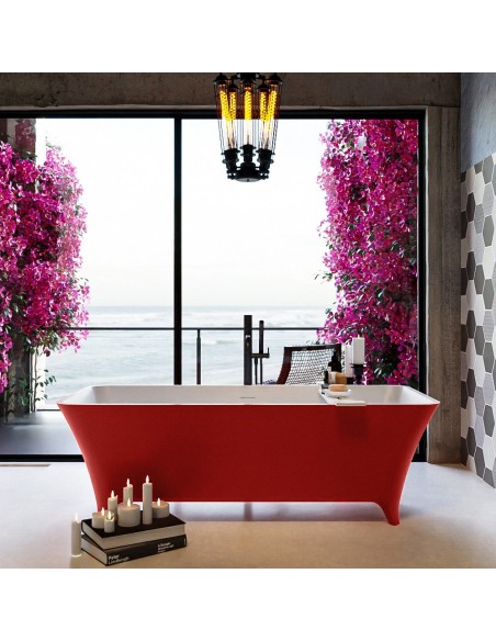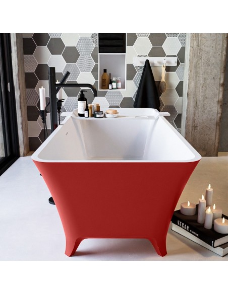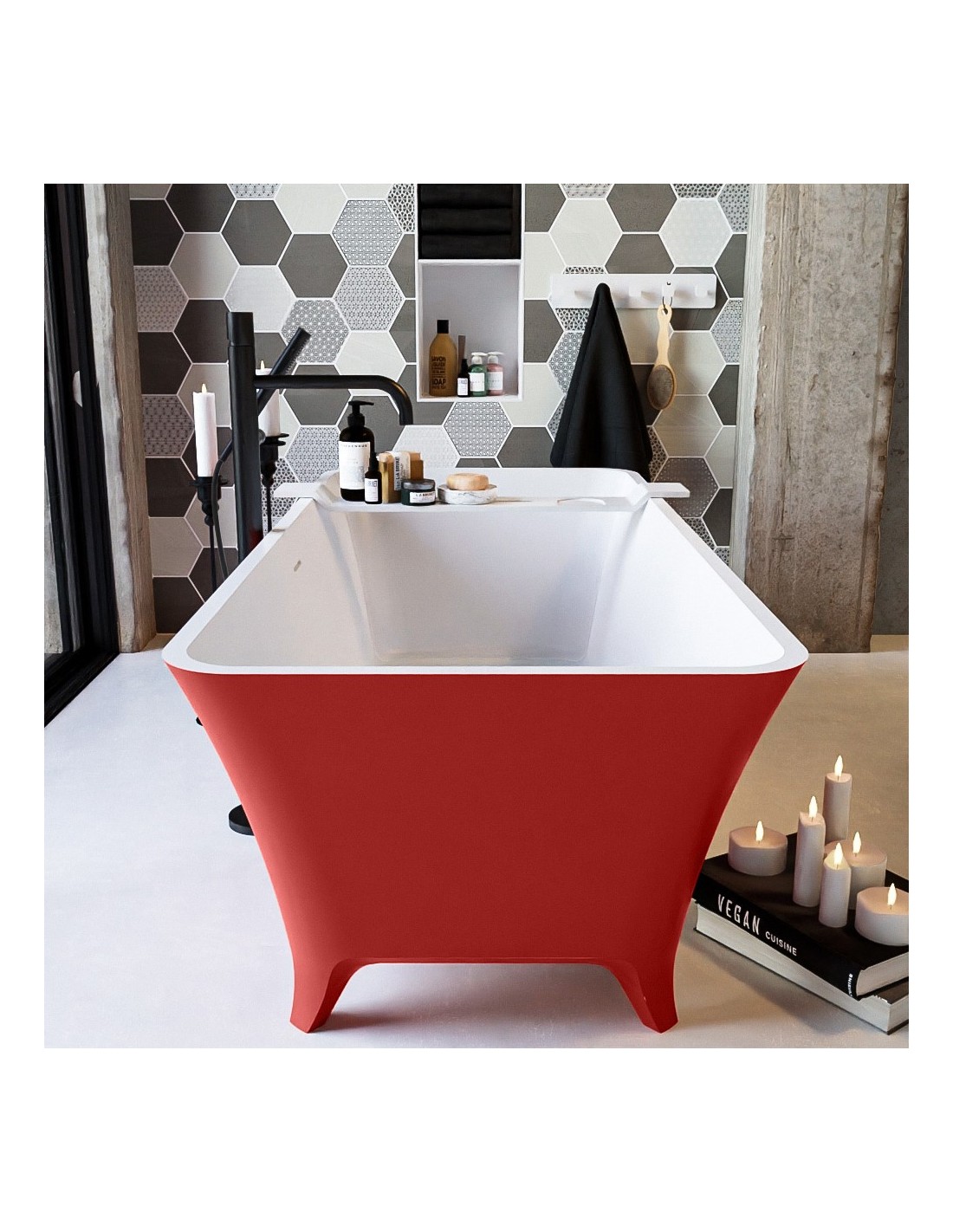 LUNDY fritstående badekar 170 x 75 cm Solid surface - Talkum/Rød