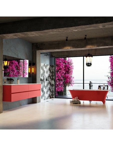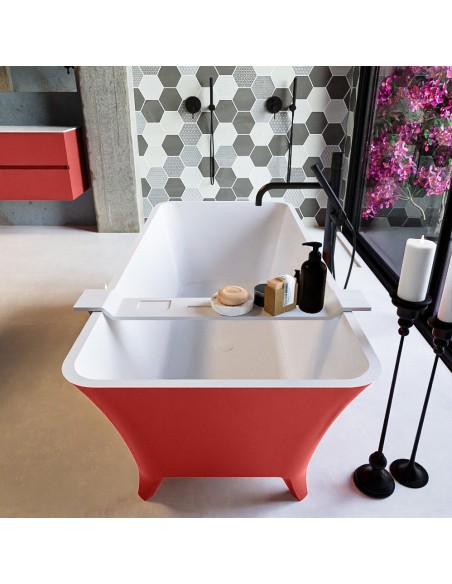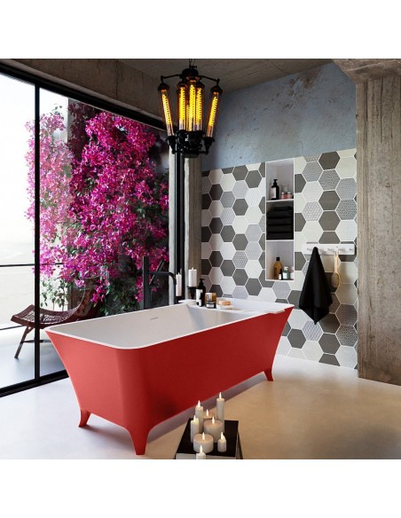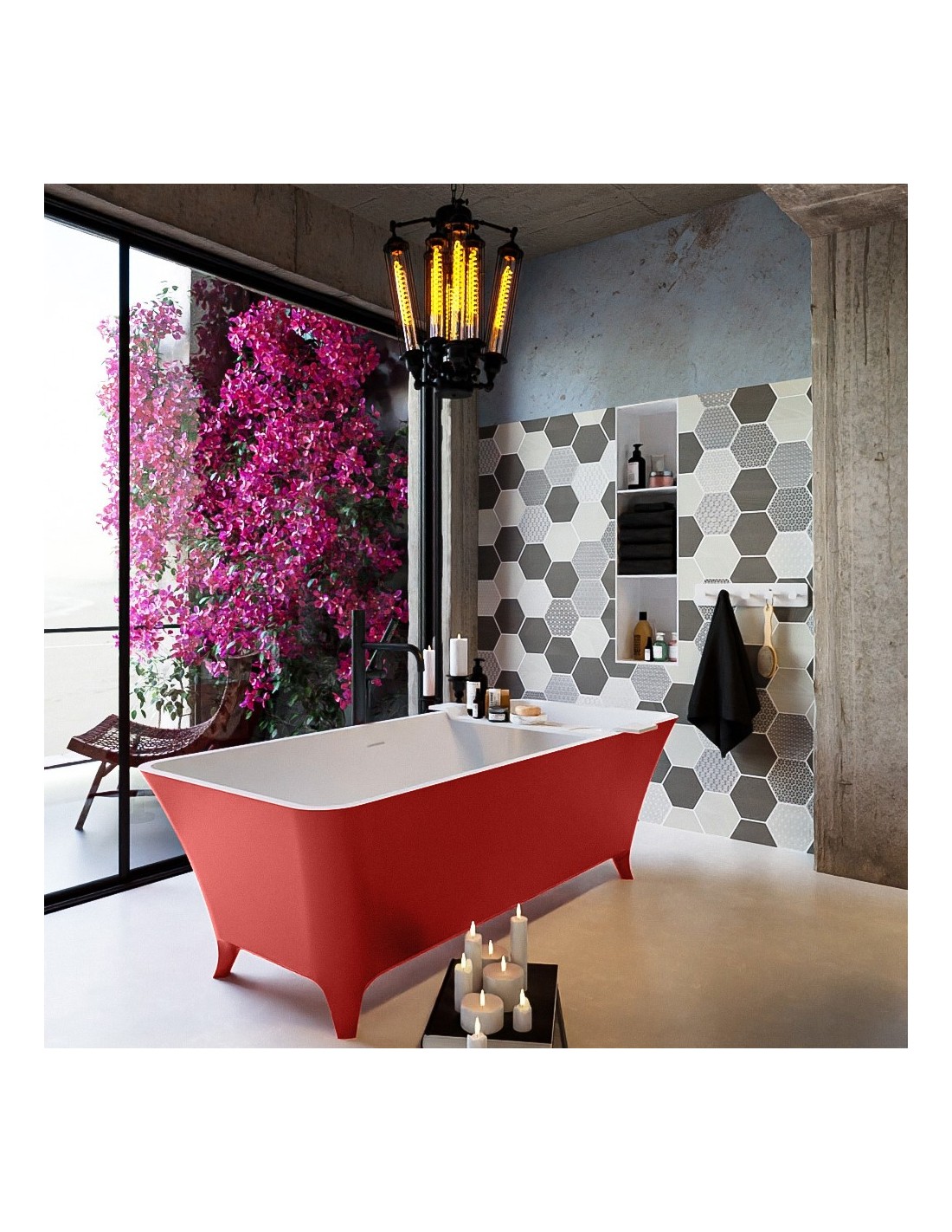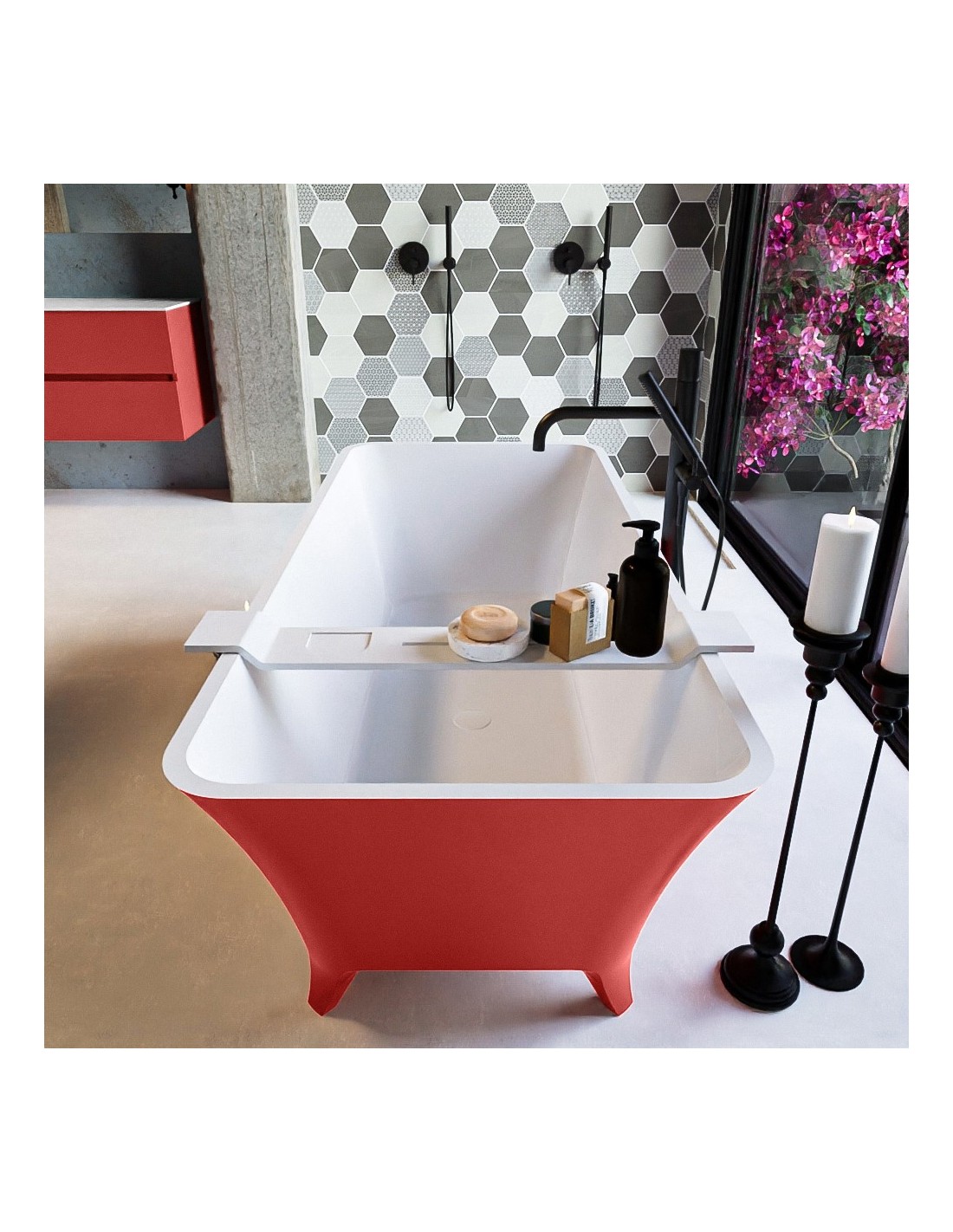 LUNDY fritstående badekar 170 x 75 cm Solid surface - Talkum/Rød