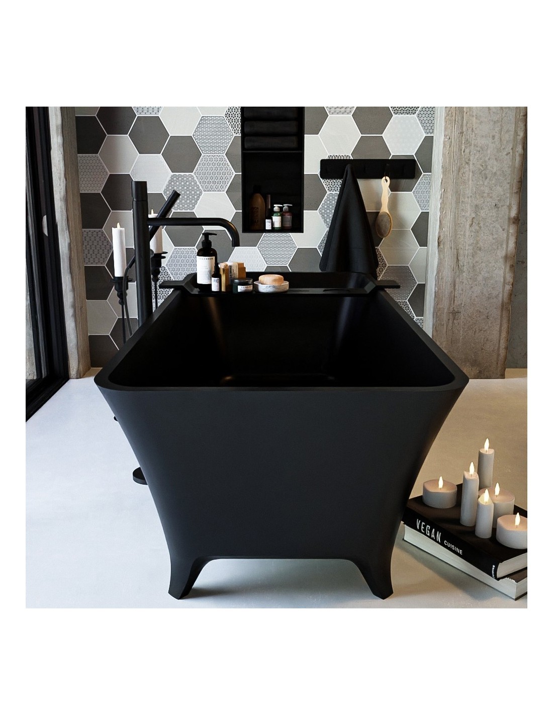 LUNDY fritstående badekar 170 x 75 cm Solid surface - Sort