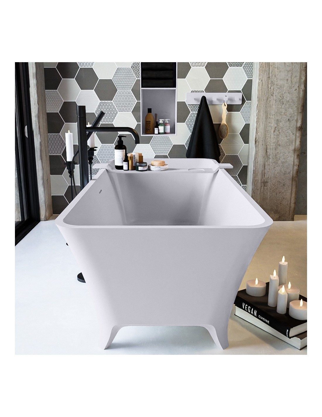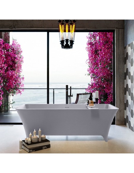 LUNDY fritstående badekar i et moderne og stilrent design, fremstillet i det solide materiale "Solid Surface", der ikke alene giver badeværelset et stilrent design, men samtidig er lækkert at røre ved. Badekaret måler 170 cm i længden og 75 cm i bredden (ydermål). Badekaret har overløb.
