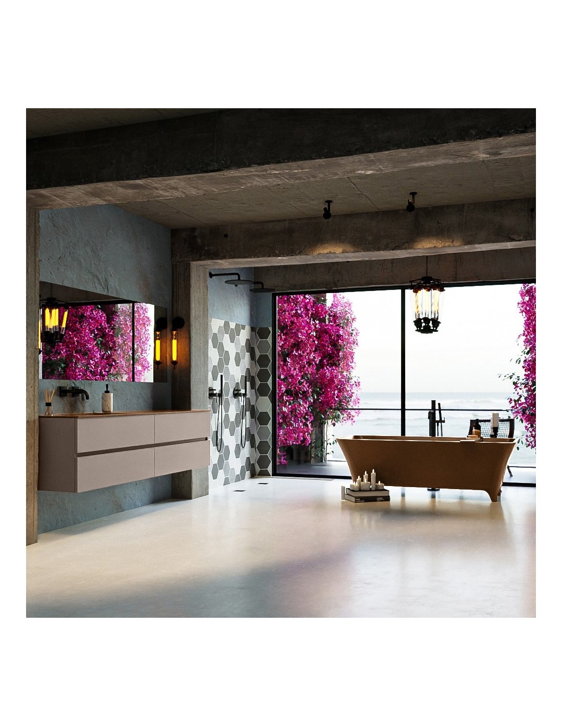 Mondiaz tilbyder et spændende og lækkert sortiment af badeværelsesindretning til attraktive priser. Mondiaz er specialister indenfor indretning af badeværelser, og tilbyder næsten et komplet sortiment, så som badeværelsesmøbler, moderne håndvaske og badekar, samt luksuriøse spejle med mere. Fra Mondiaz finder du badeværelsesmøbler i forskellige stilarter, herunder badeværelsesmøbler fremstillet i massiv træ, samt i solid surface og marmor. Indretning til badeværelset i høj kvalitet til attraktive priser er hver Mondiaz står for.