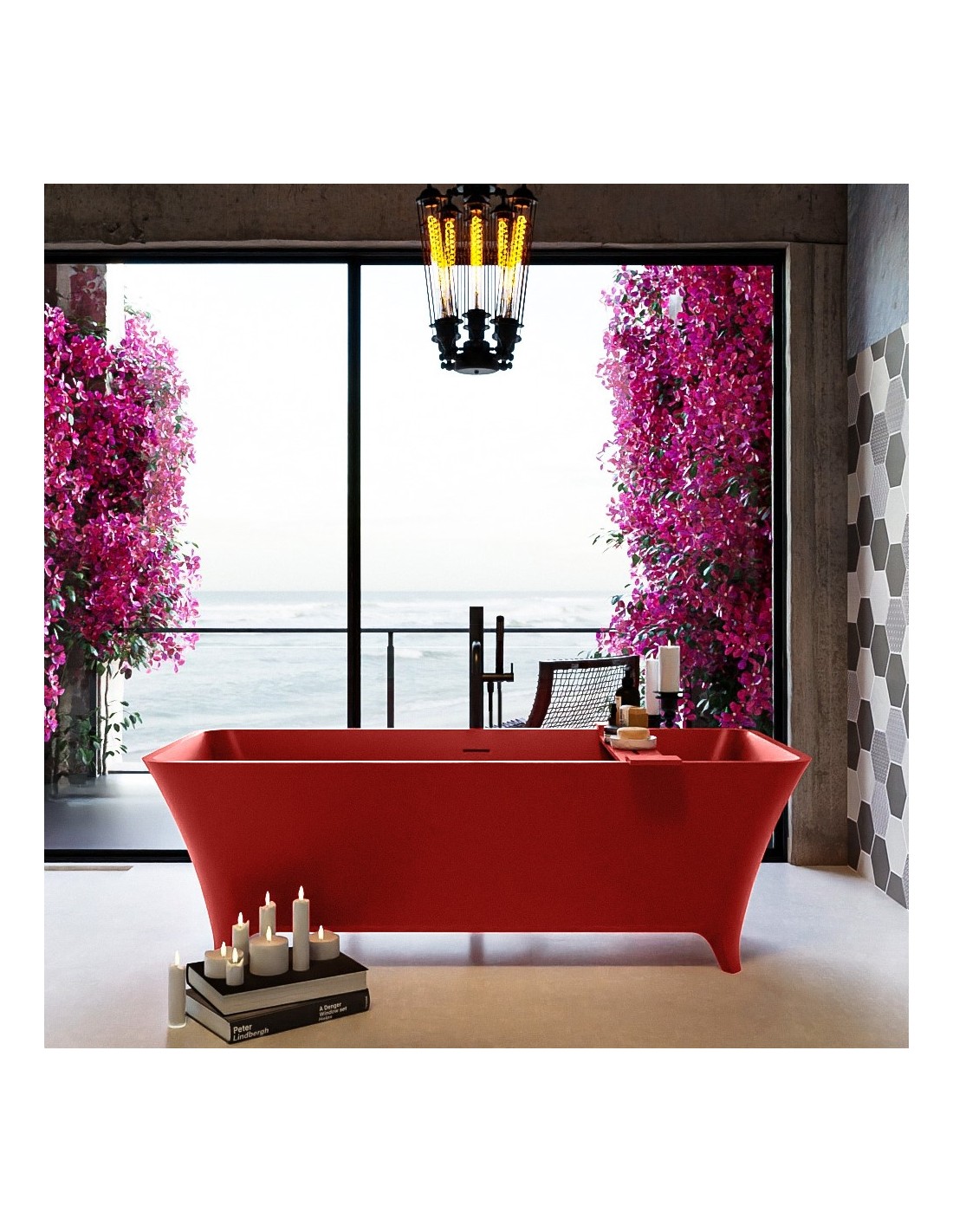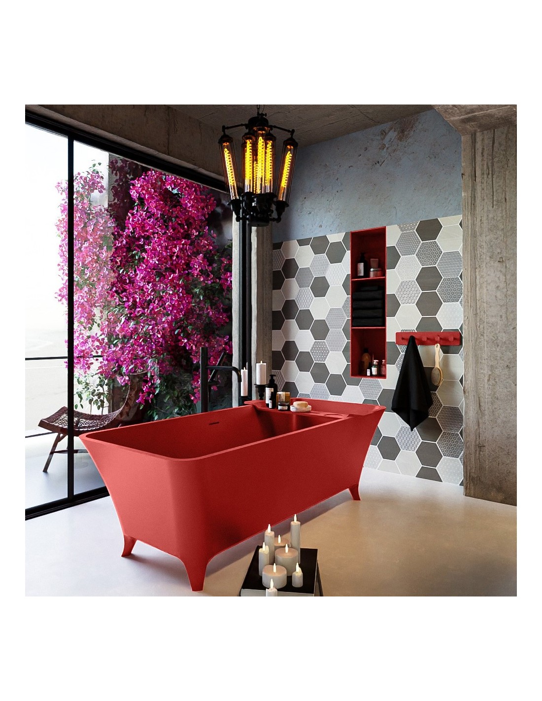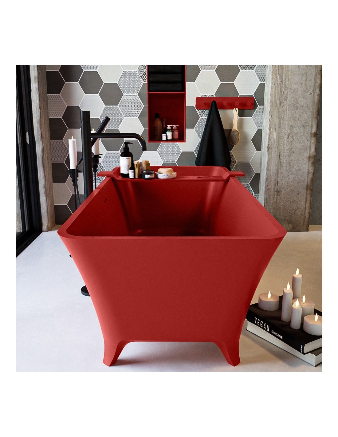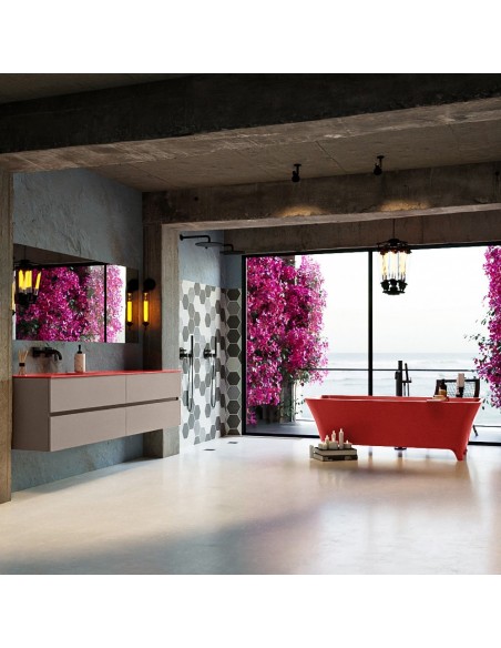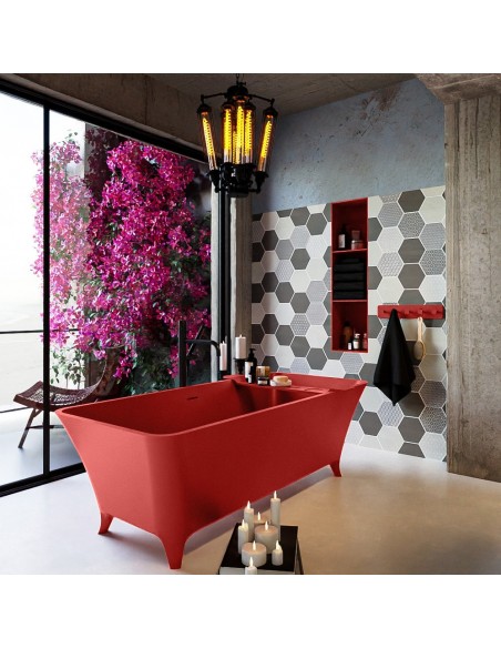 LUNDY fritstående badekar 170 x 75 cm Solid surface - Rød