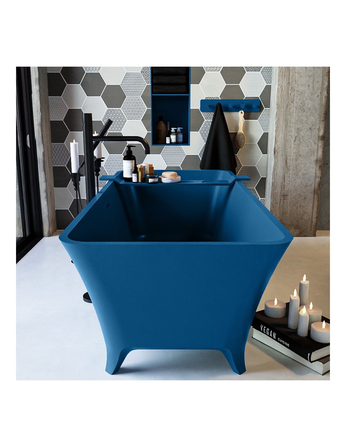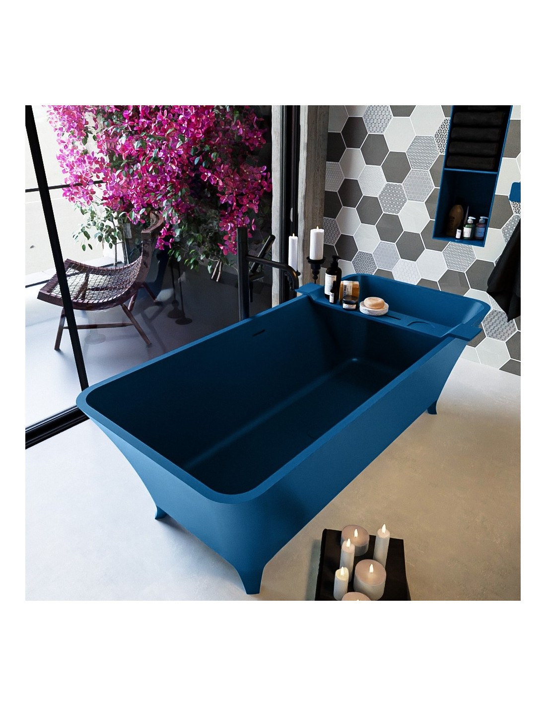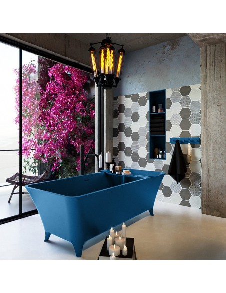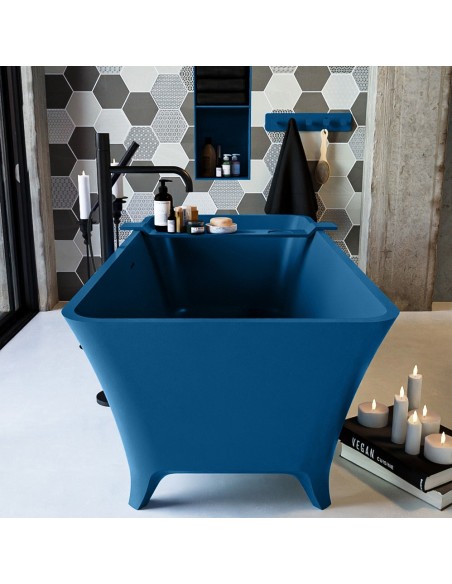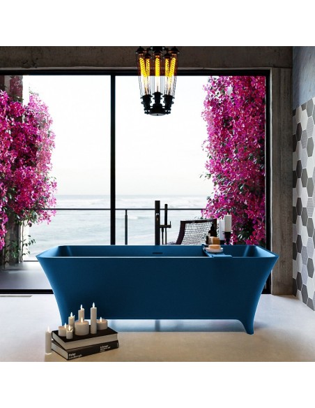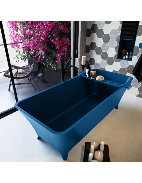 LUNDY fritstående badekar 170 x 75 cm Solid surface - Jeansblå