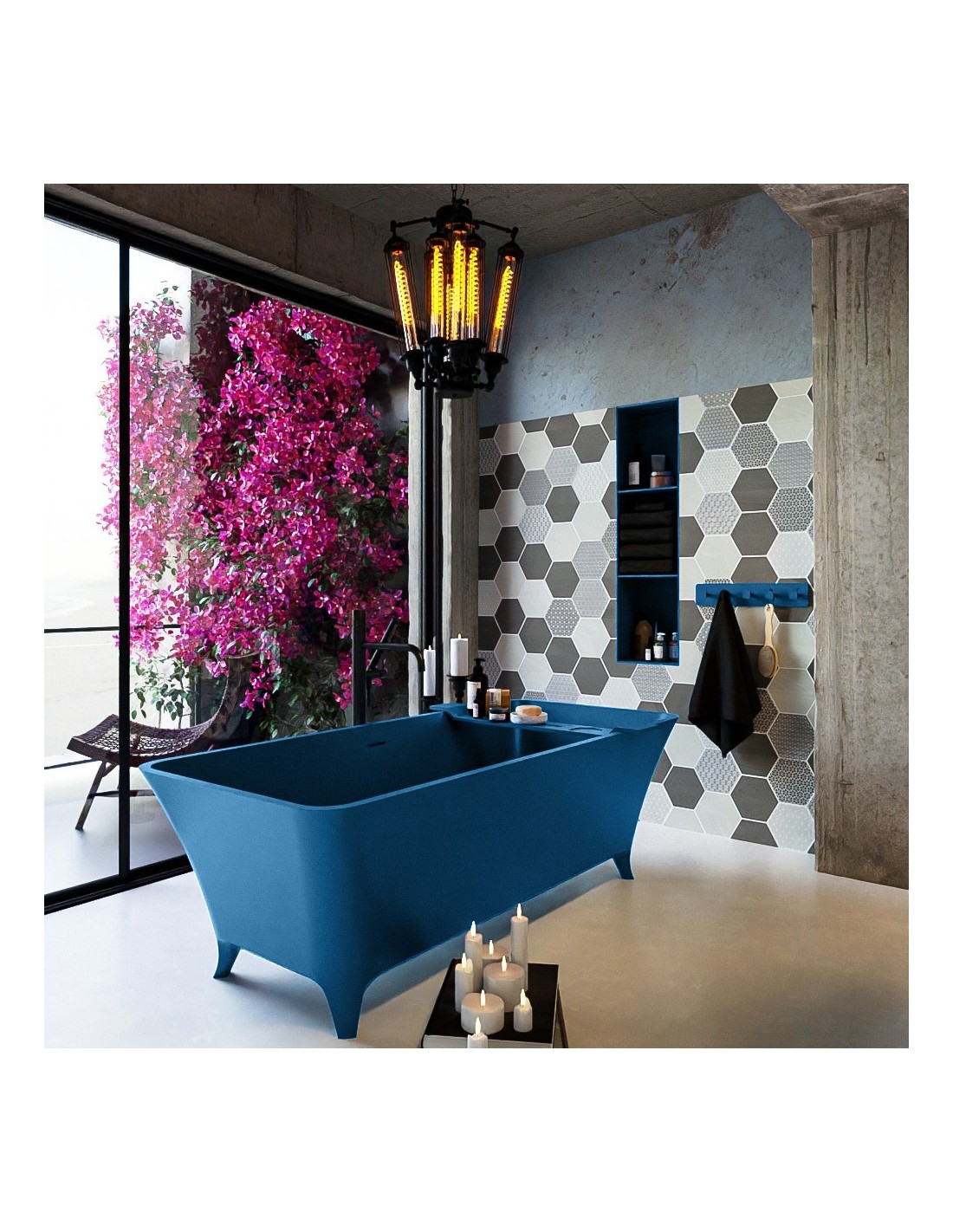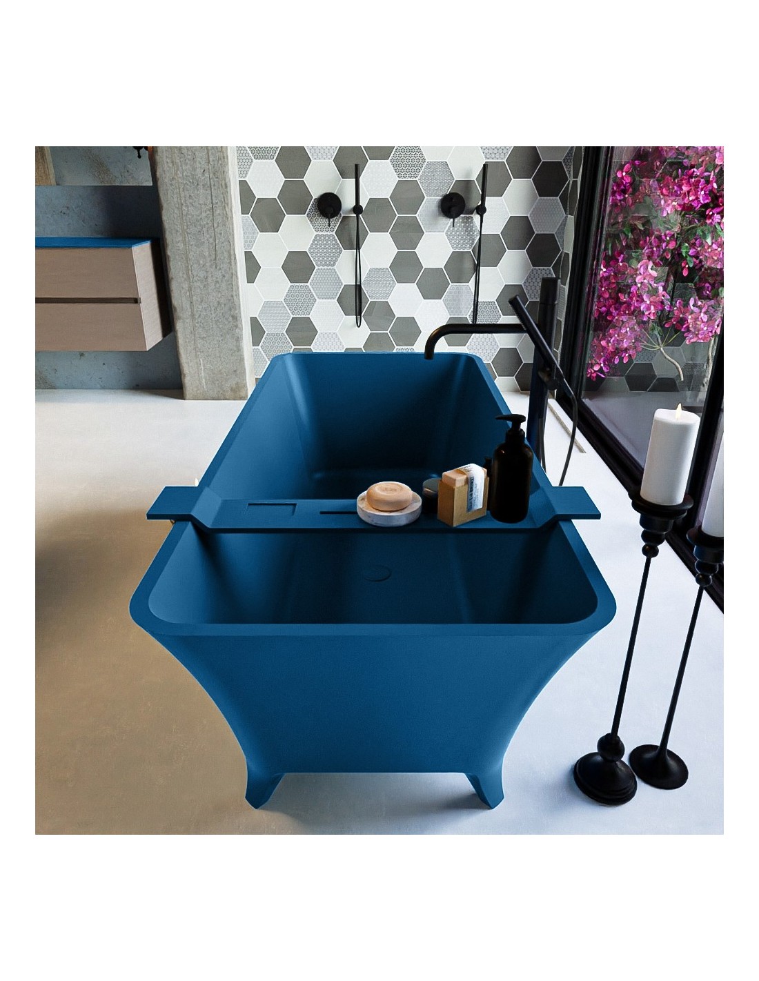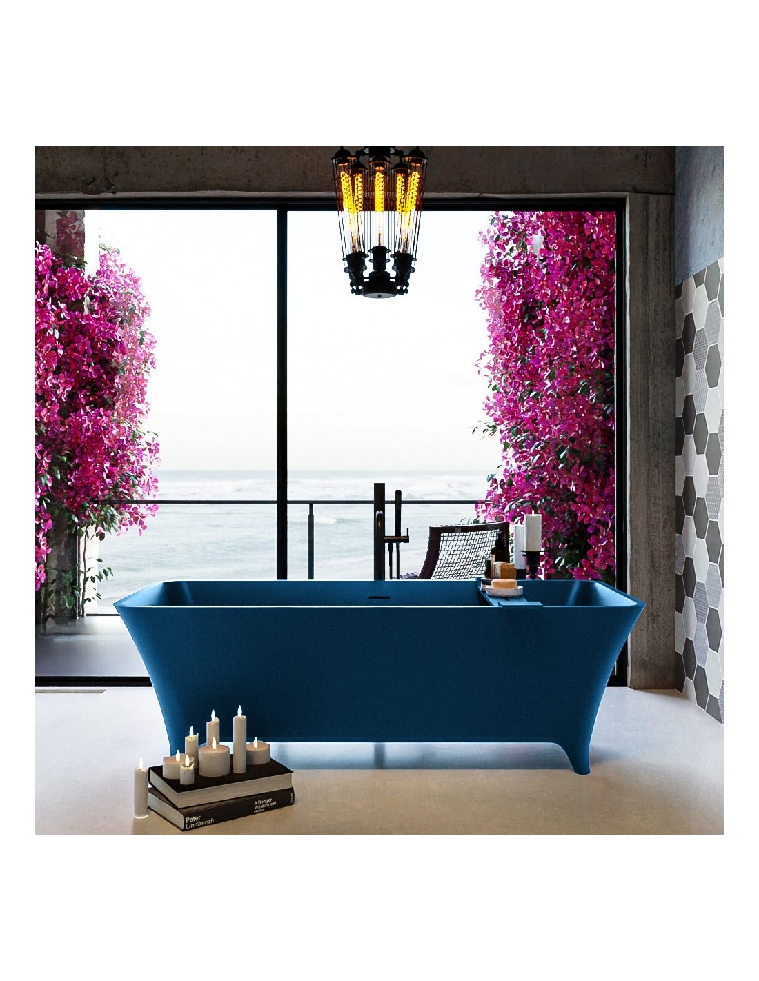 LUNDY fritstående badekar 170 x 75 cm Solid surface - Jeansblå
