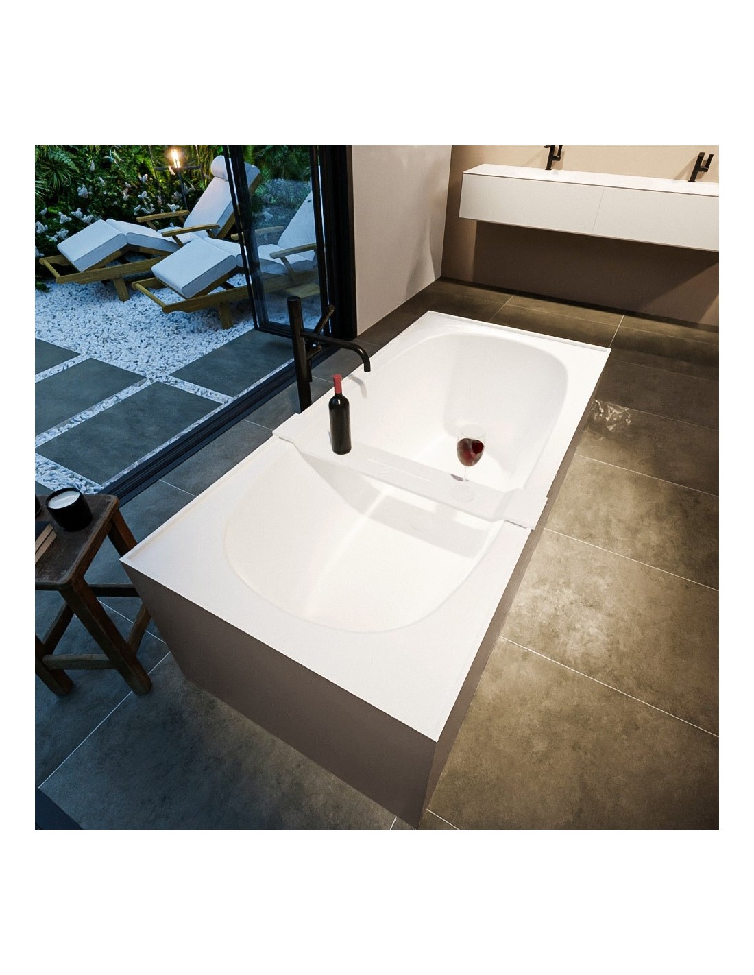 FREEZE fritstående badekar 180 x 85 cm Solid surface - Talkum/Røg