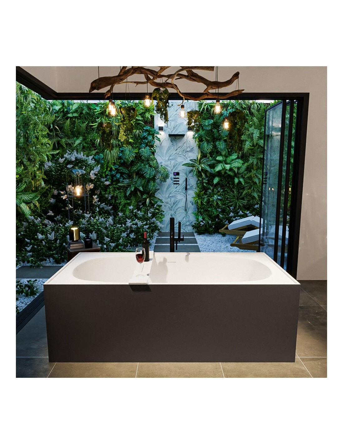 FREEZE fritstående badekar 180 x 85 cm Solid surface - Talkum/Mørkegrå