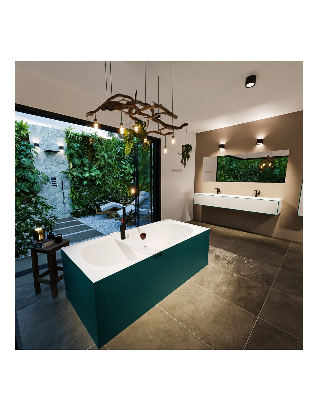 FREEZE fritstående badekar 180 x 85 cm Solid surface - Talkum/Petrolium