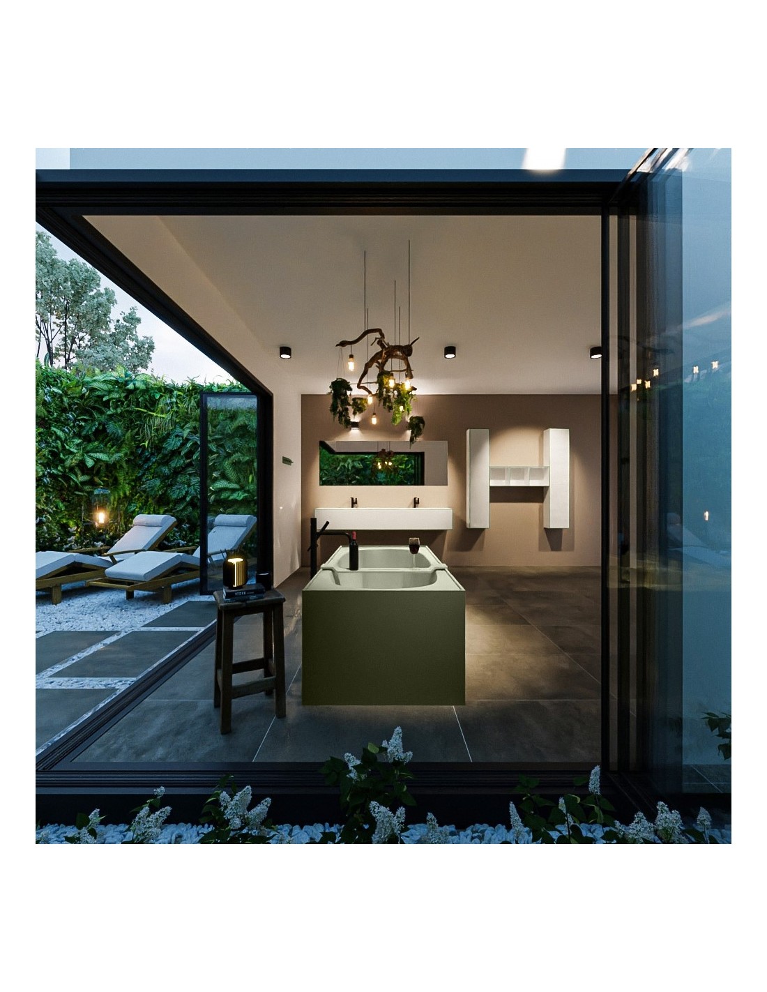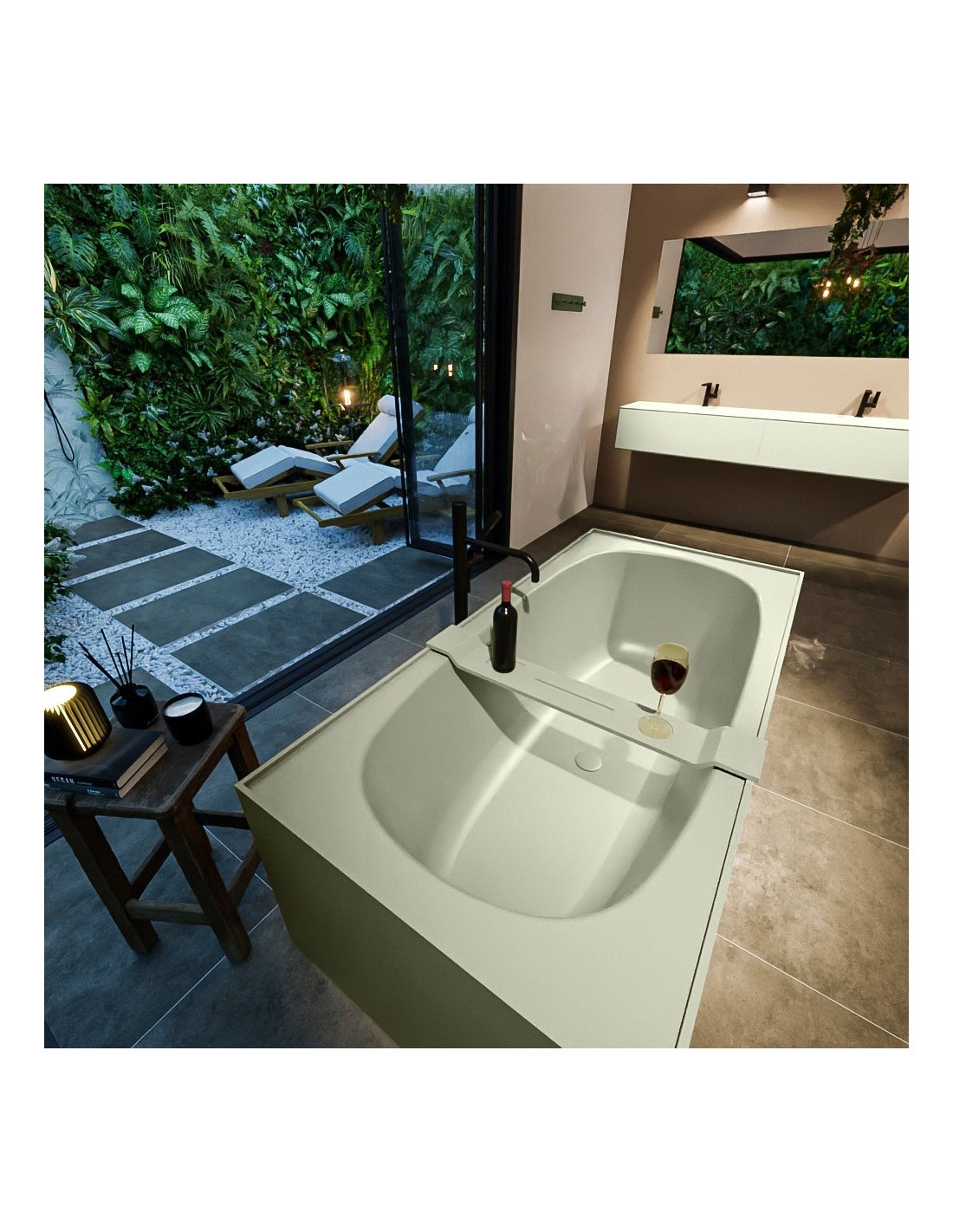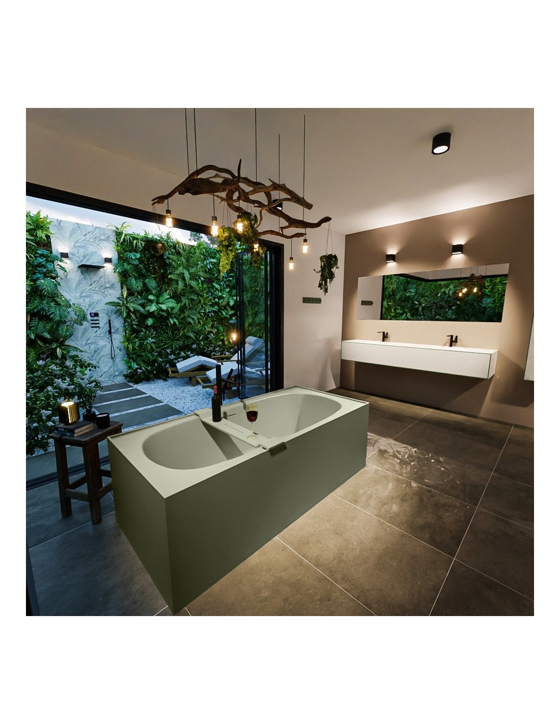 FREEZE fritstående badekar 180 x 85 cm Solid surface - Armygrøn