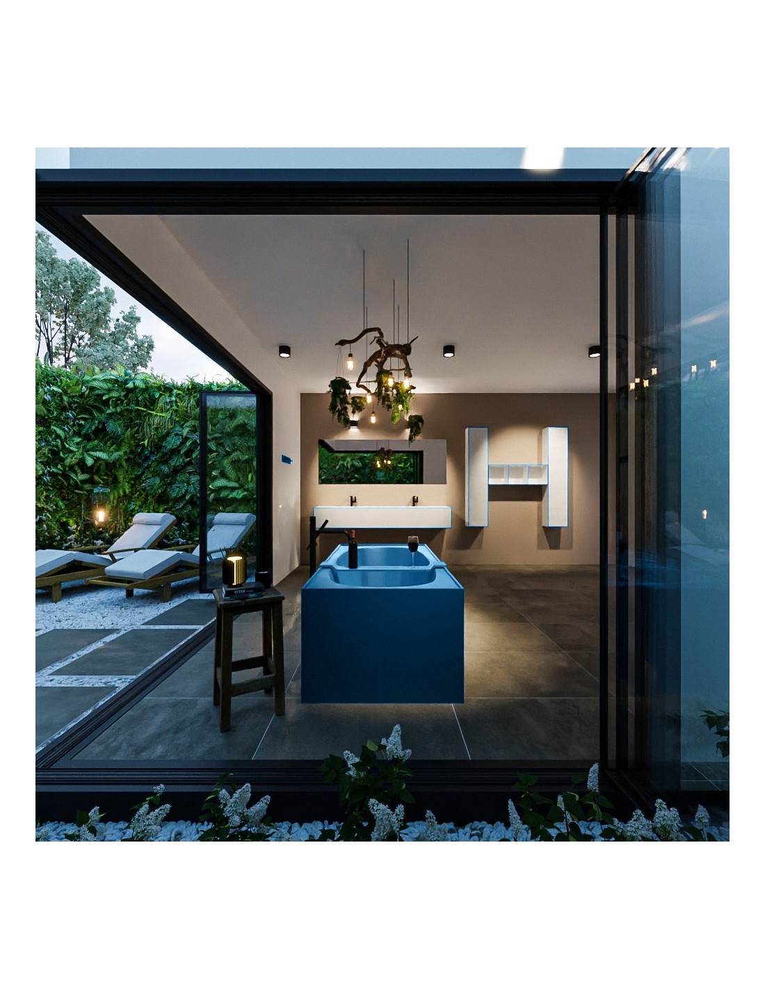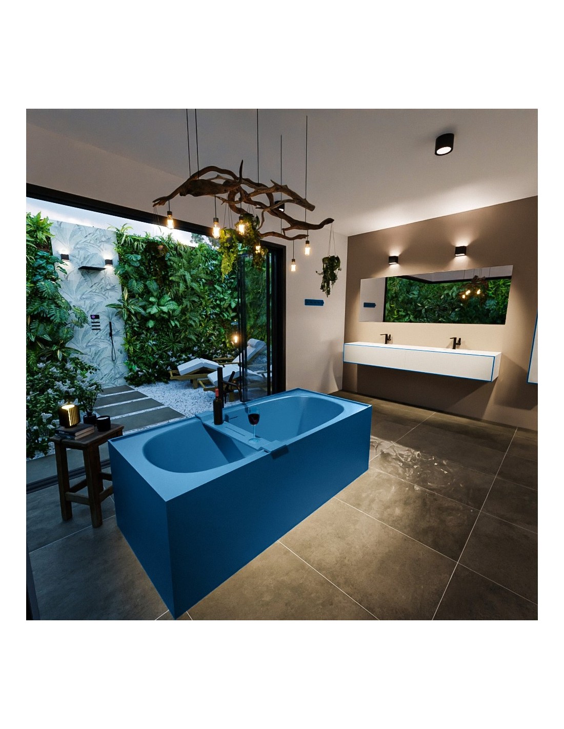 FREEZE fritstående badekar 180 x 85 cm Solid surface - Jeansblå