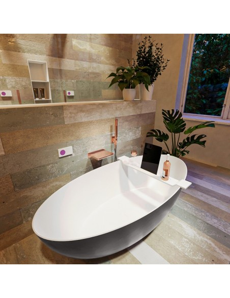 FLOAT fritstående badekar 170 x 80 cm Solid surface - Talkum/Mørkegrå