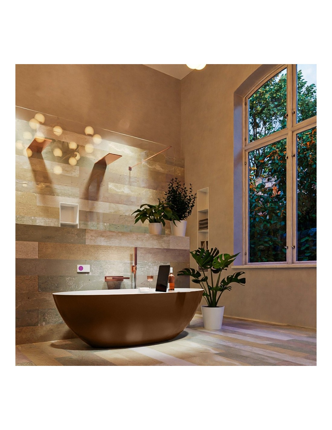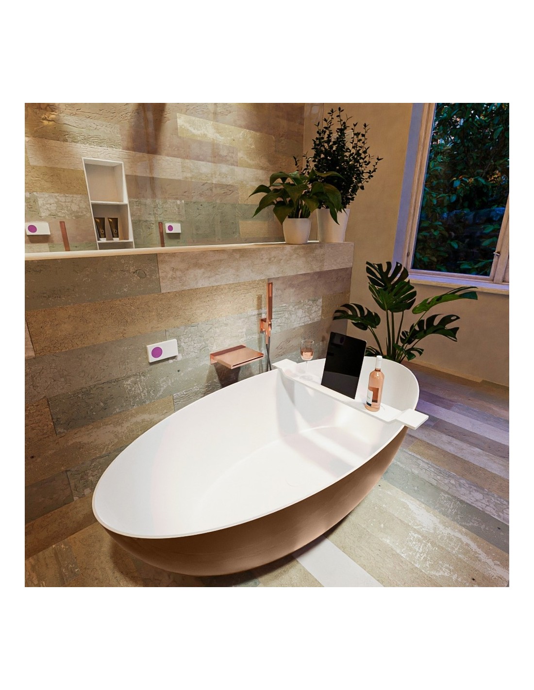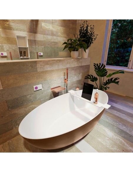 FLOAT fritstående badekar 170 x 80 cm Solid surface - Talkum/Rustbrun