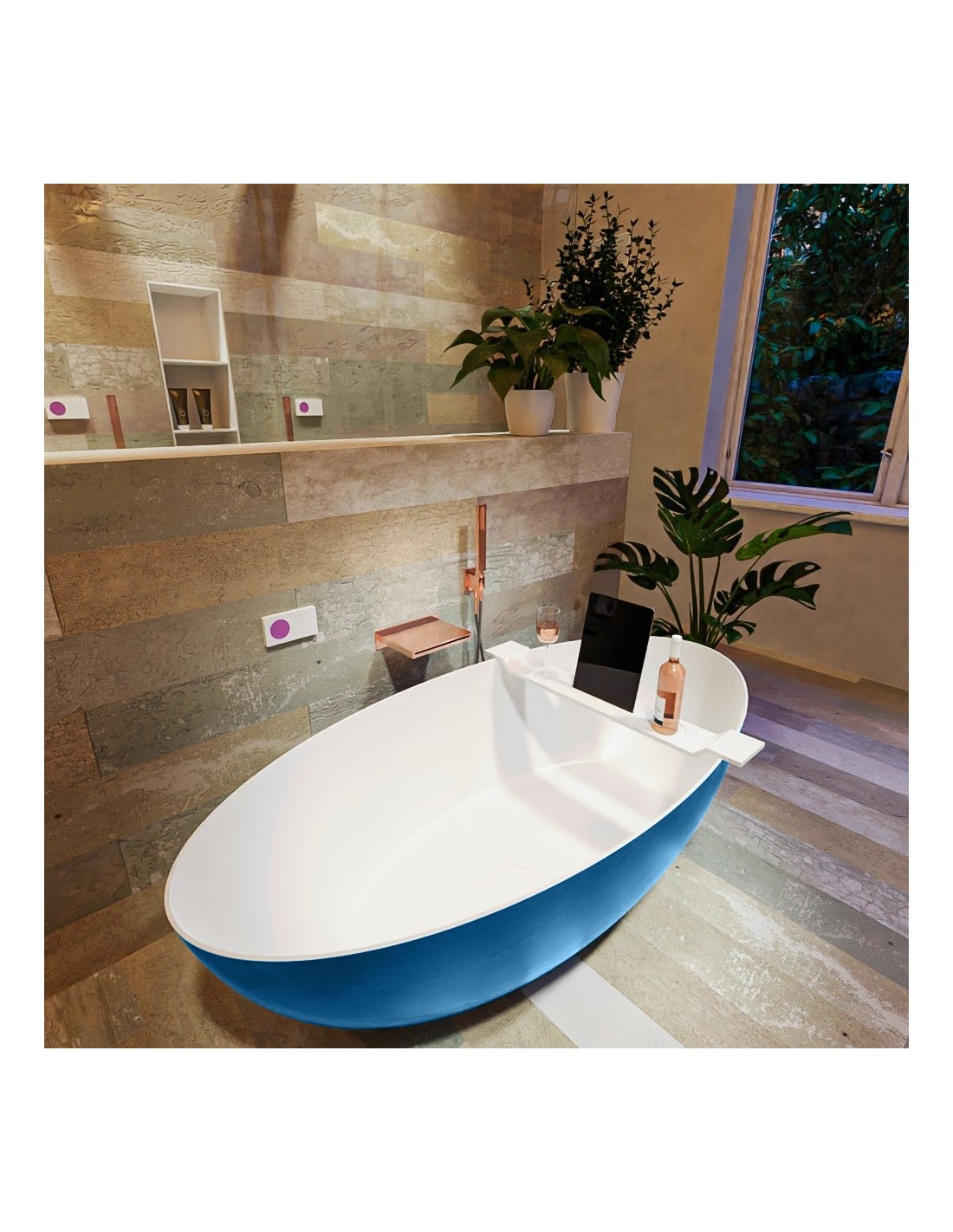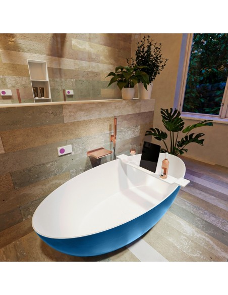 FLOAT fritstående badekar 170 x 80 cm Solid surface - Talkum/Jeansblå