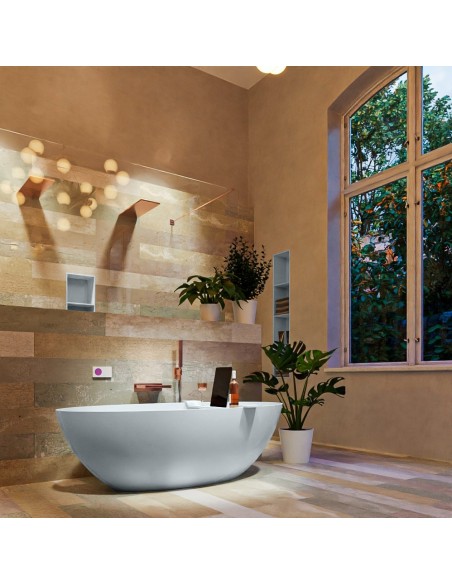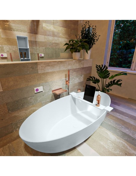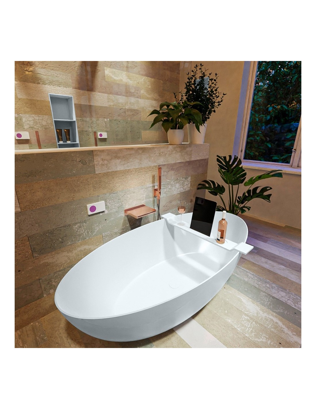 FLOAT fritstående badekar i et moderne og stilrent design, fremstillet i det solide materiale "Solid Surface", der ikke alene giver badeværelset et stilrent design, men samtidig er lækkert at røre ved. Badekaret måler 170 cm i længden og 80 cm i bredden (ydermål). Badekaret har overløb.