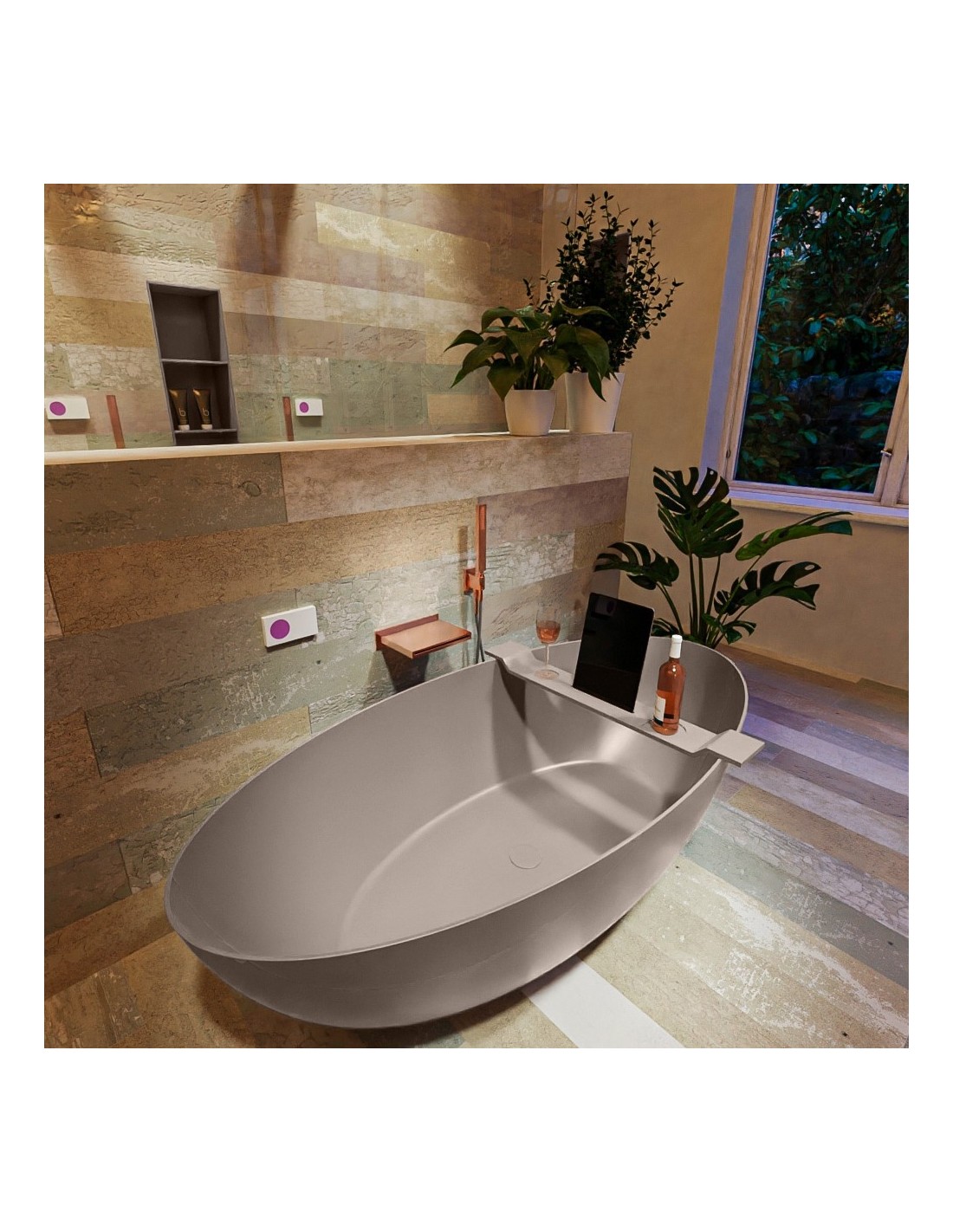 FLOAT fritstående badekar 170 x 80 cm Solid surface - Røg
