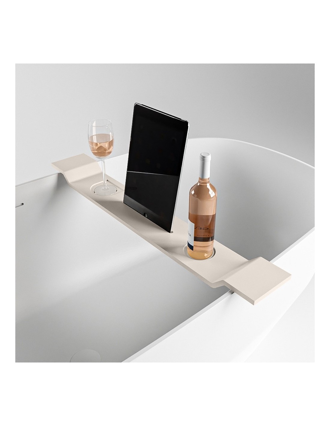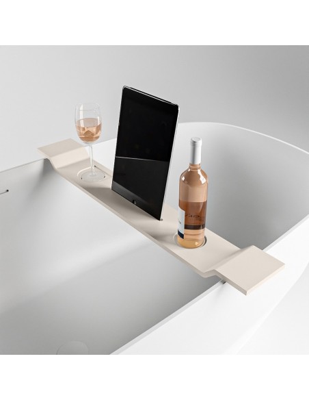 EASY hylde til badekar, udført i et moderne og stilrent design af det solide materiale "Solid Surface", der ikke alene giver badeværelset et stilrent design, men samtidig er lækkert at røre ved. Hylden måler 86 cm i bredden og 12,5 cm i dybden.