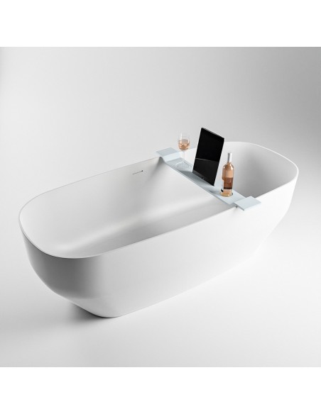 EASY hylde til badekar, udført i et moderne og stilrent design af det solide materiale "Solid Surface", der ikke alene giver badeværelset et stilrent design, men samtidig er lækkert at røre ved. Hylden måler 86 cm i bredden og 12,5 cm i dybden.