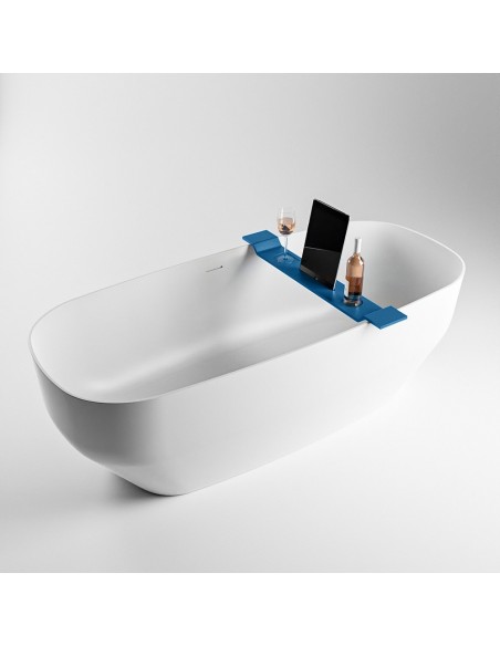 EASY hylde til badekar, udført i et moderne og stilrent design af det solide materiale "Solid Surface", der ikke alene giver badeværelset et stilrent design, men samtidig er lækkert at røre ved. Hylden måler 86 cm i bredden og 12,5 cm i dybden.