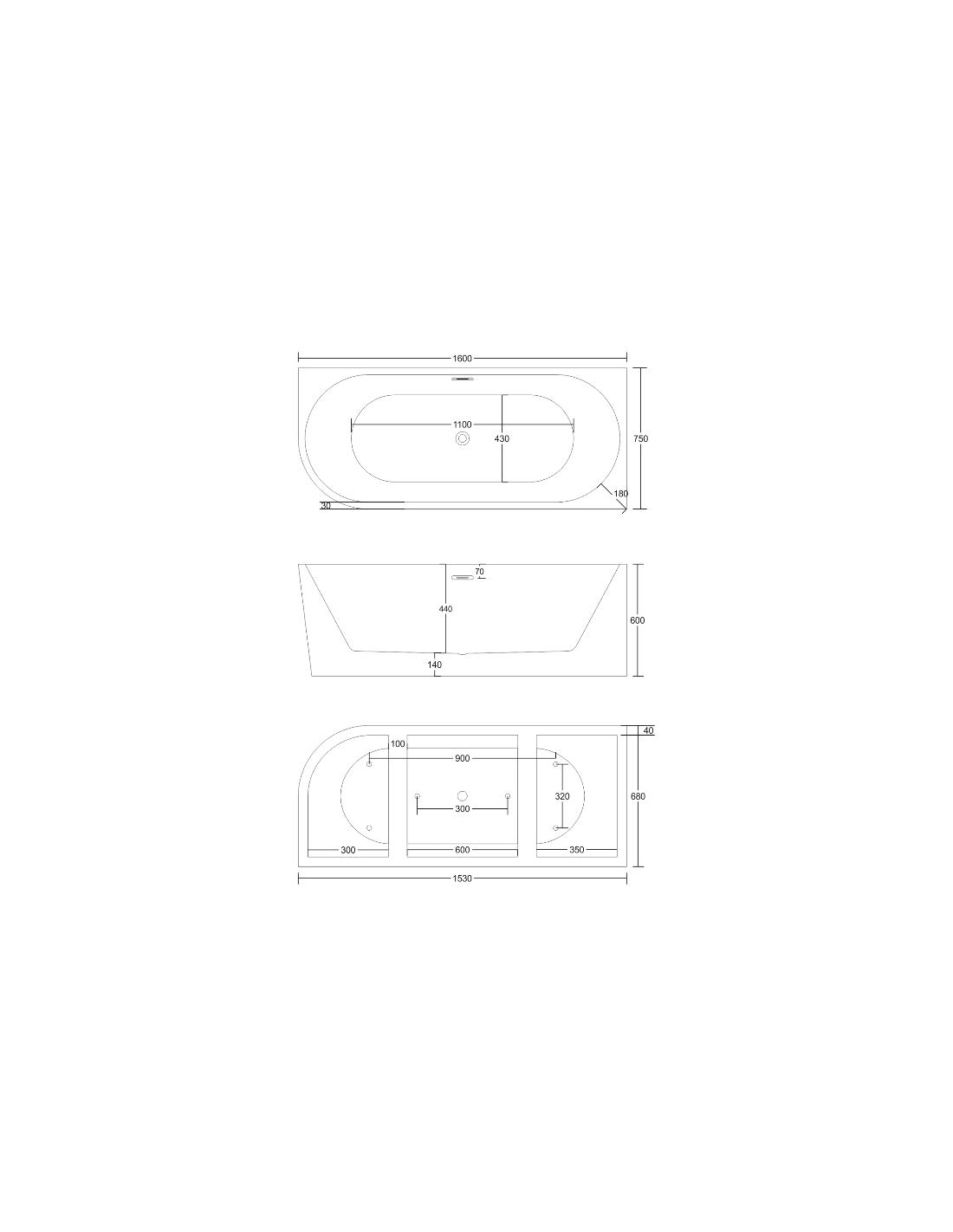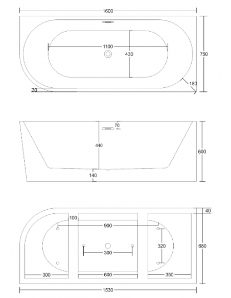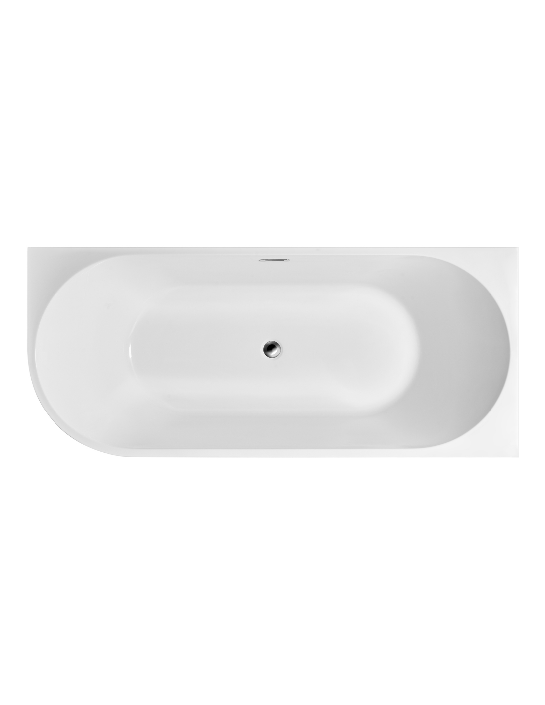 Intero højrevendt fritstående væg badekar i et moderne og stilrent design, fremstillet i blank hvid premium akryl. Badekaret måler 160 cm i længden og 75 cm i bredden (ydermål). Badekaret har overløb samt pop-up bundventil i kromlakeret stål/messing.