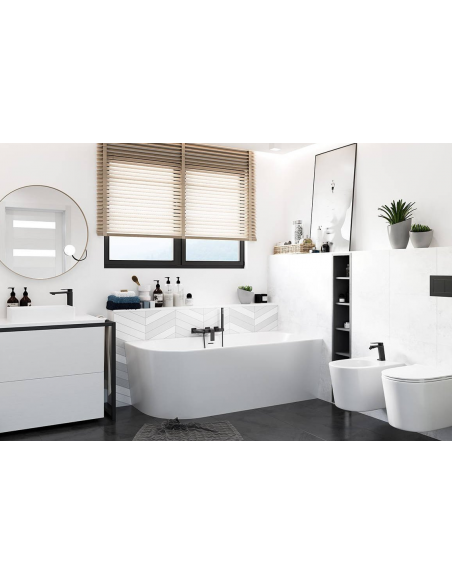 Intero højrevendt hjørnemonteret badekar 160 x 75 cm Akryl - Blank hvid/Krom