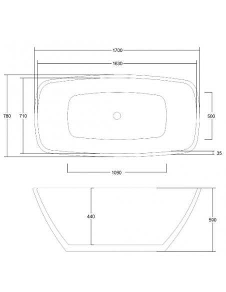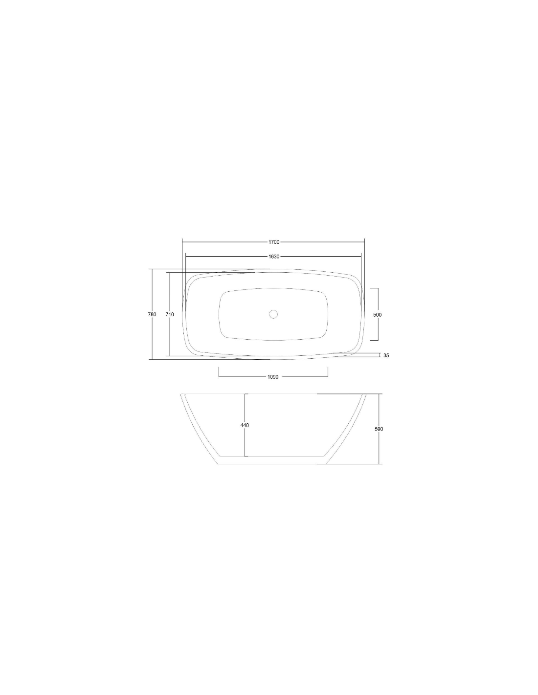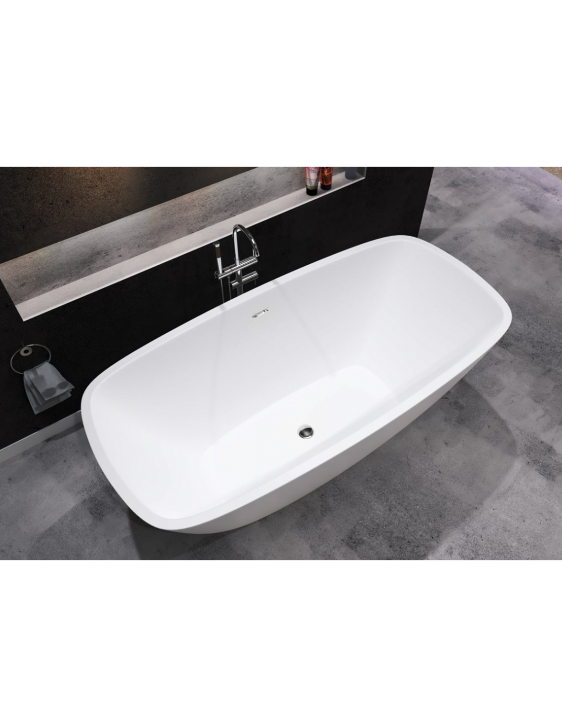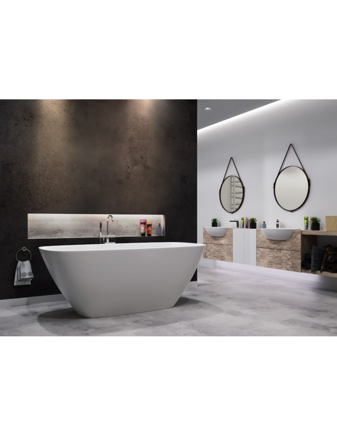 OKAMA fritstående badekar i et moderne og stilrent design, fremstillet i blank hvid premium akryl. Badekaret måler 170 cm i længden og 78 cm i bredden (ydermål). Badekaret har overløb samt pop-up bundventil i kromlakeret stål/messing.