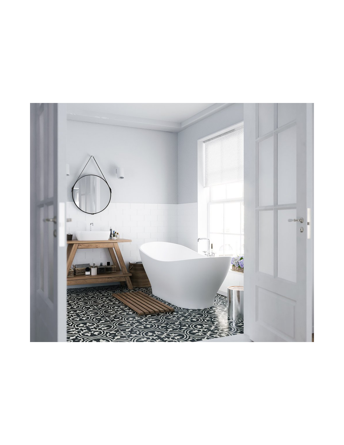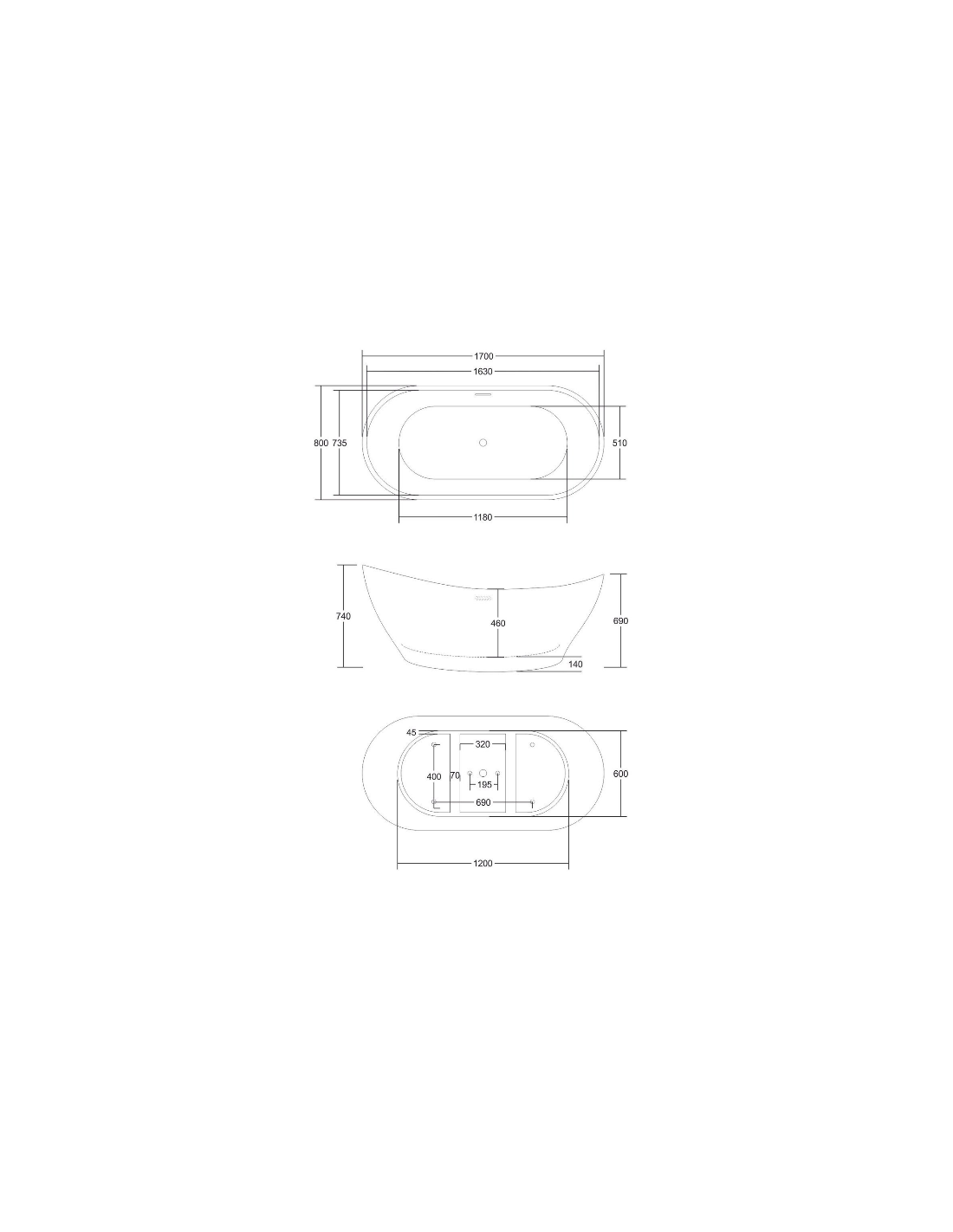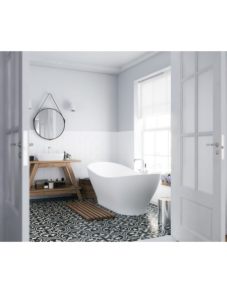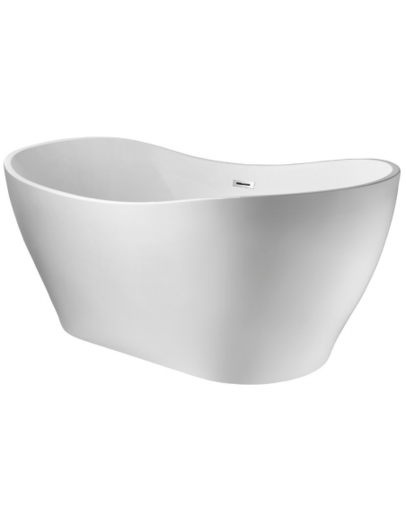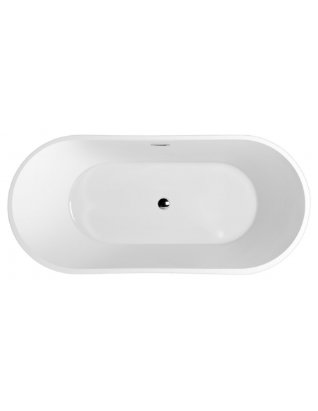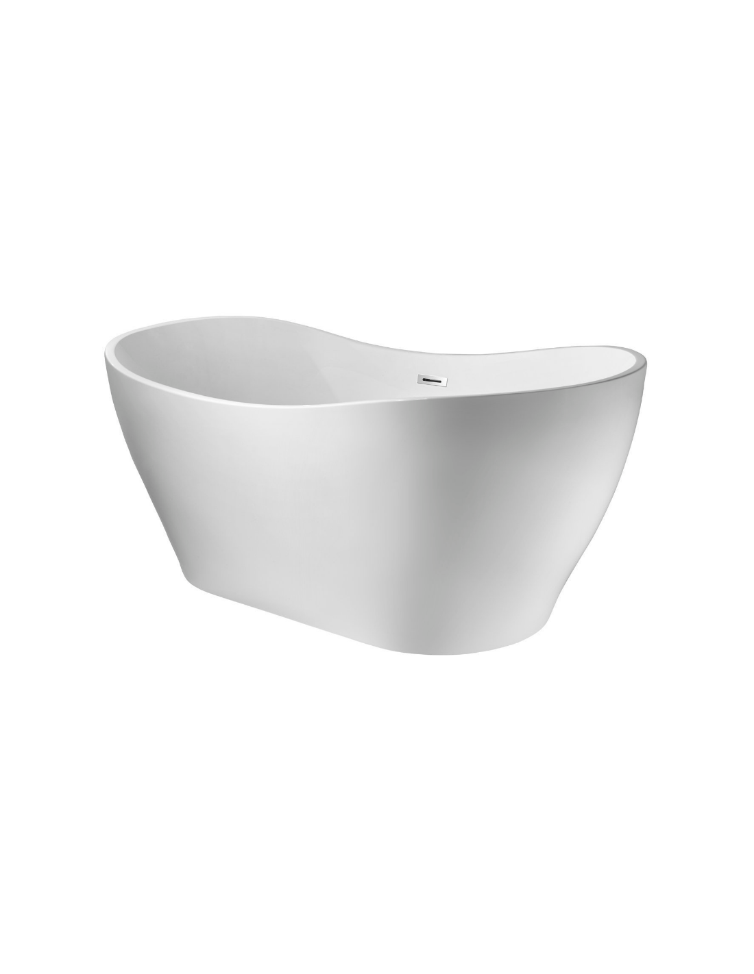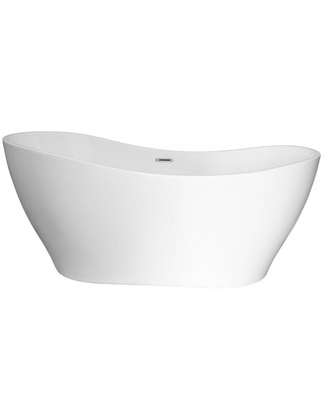 STELLA fritstående badekar i et moderne og stilrent design, fremstillet i blank hvid premium akryl. Badekaret måler 170 cm i længden og 80 cm i bredden (ydermål). Badekaret har overløb samt pop-up bundventil i kromlakeret stål/messing.
