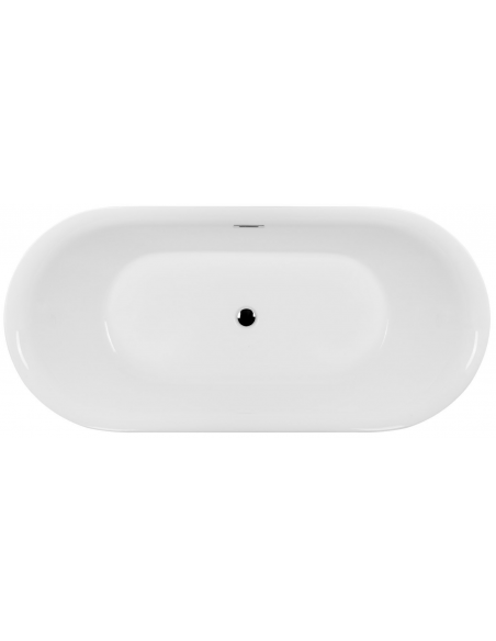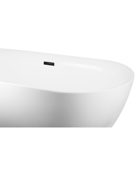 OLVENA fritstående badekar i et moderne og stilrent design, fremstillet i blank hvid premium akryl. Badekaret måler 160 cm i længden og 75 cm i bredden (ydermål). Badekaret har overløb samt pop-up bundventil i kromlakeret stål/messing.