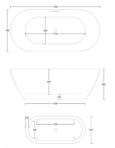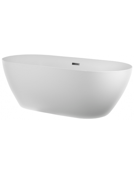 OLVENA fritstående badekar i et moderne og stilrent design, fremstillet i blank hvid premium akryl. Badekaret måler 170 cm i længden og 79,5 cm i bredden (ydermål). Badekaret har overløb samt pop-up bundventil i kromlakeret stål/messing.