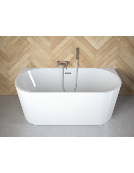 VICA vægmonteret badekar i et moderne og stilrent design, fremstillet i blank hvid premium akryl. Badekaret måler 150 cm i længden og 80 cm i bredden (ydermål). Badekaret har overløb samt pop-up bundventil i kromlakeret stål/messing.