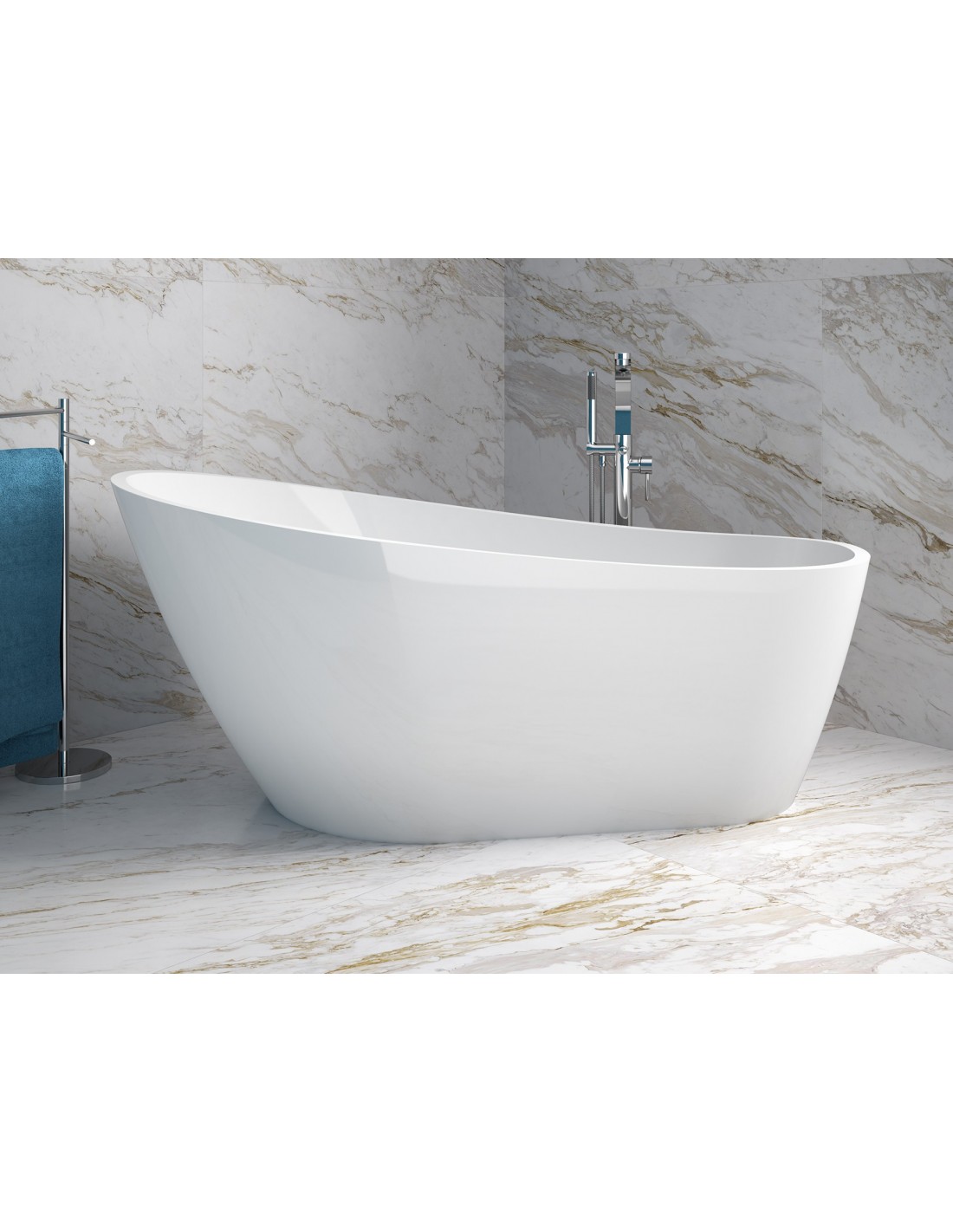 MELODY Fritstående badekar 150 x 80 cm Akryl - Blank hvid/Krom