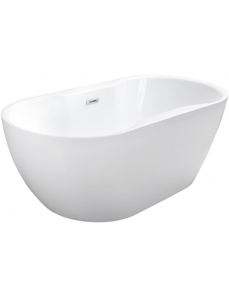 NAVIA fritstående badekar i et moderne og stilrent design, fremstillet i blank hvid premium akryl. Badekaret måler 140 cm i længden og 75 cm i bredden (ydermål). Badekaret har overløb samt pop-up bundventil i kromlakeret stål/messing.