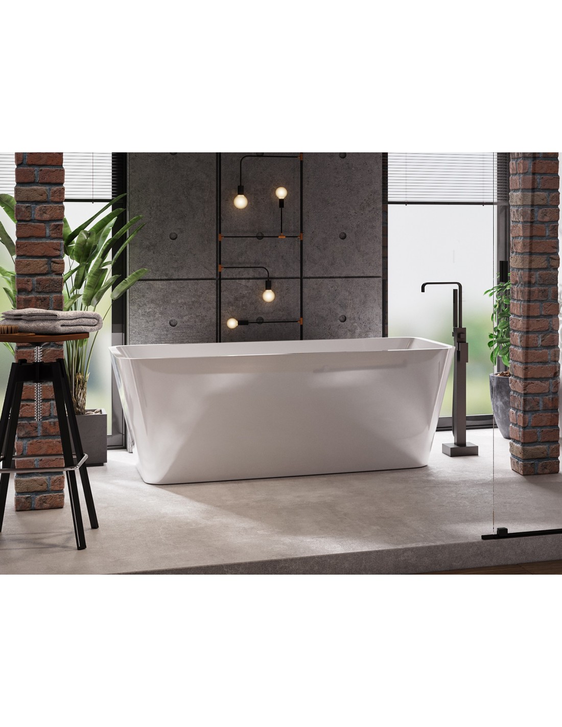 EVITA fritstående badekar i et moderne og stilrent design, fremstillet i blank hvid premium akryl. Badekaret måler 160 cm i længden og 80 cm i bredden (ydermål). Badekaret har overløb samt pop-up bundventil i kromlakeret stål/messing.