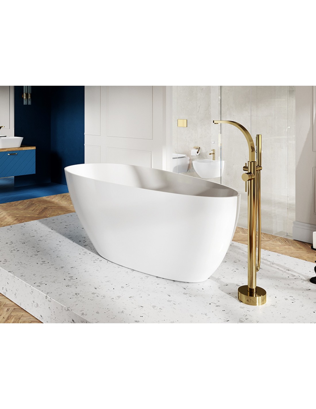 GOYA Fritstående badekar 142 x 62 cm Mineralsten - Blank hvid/Krom