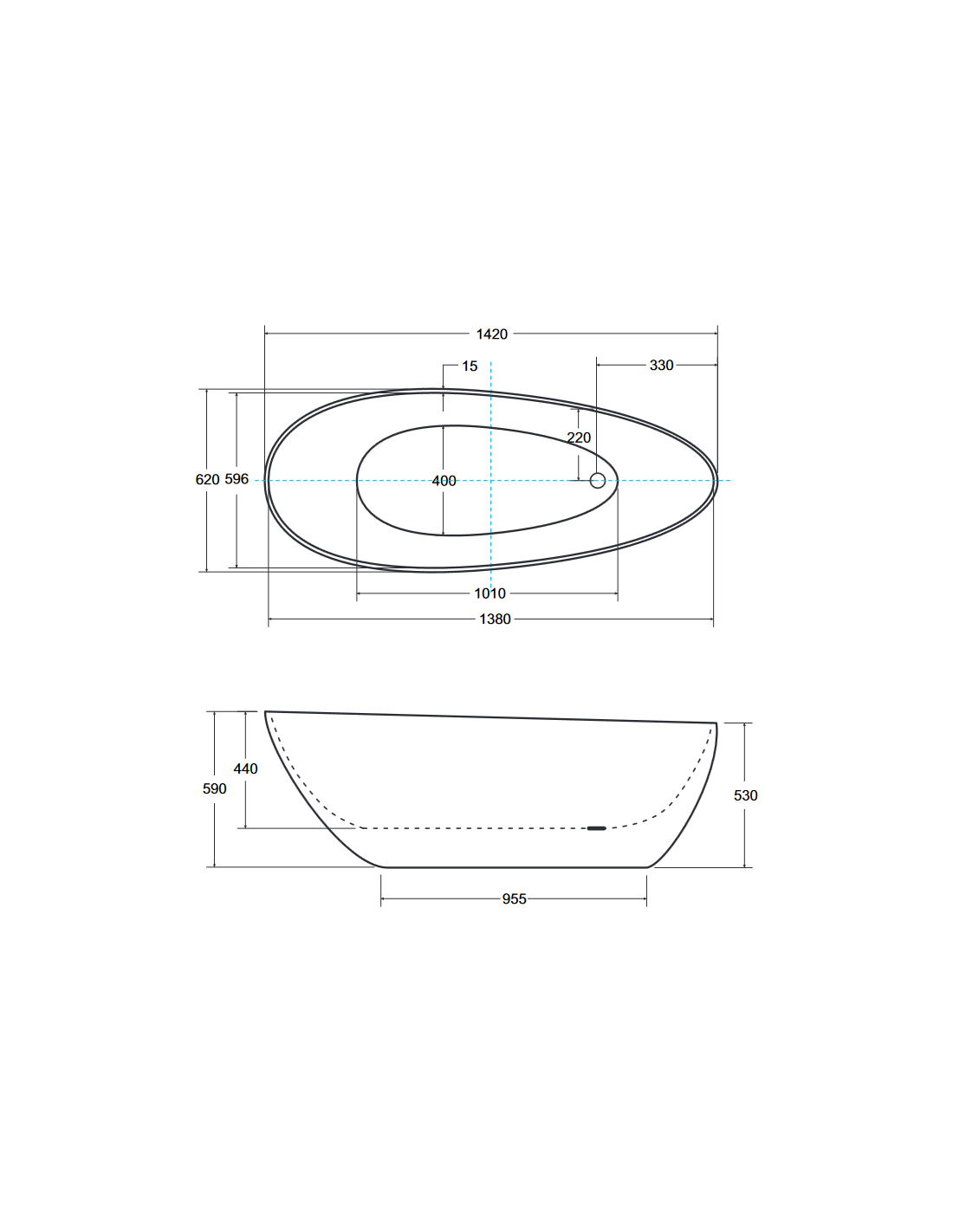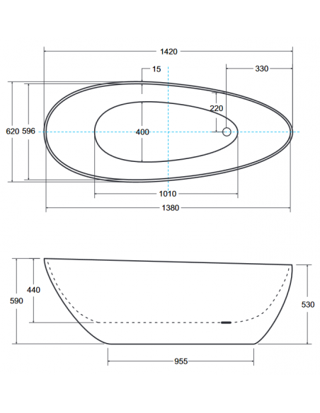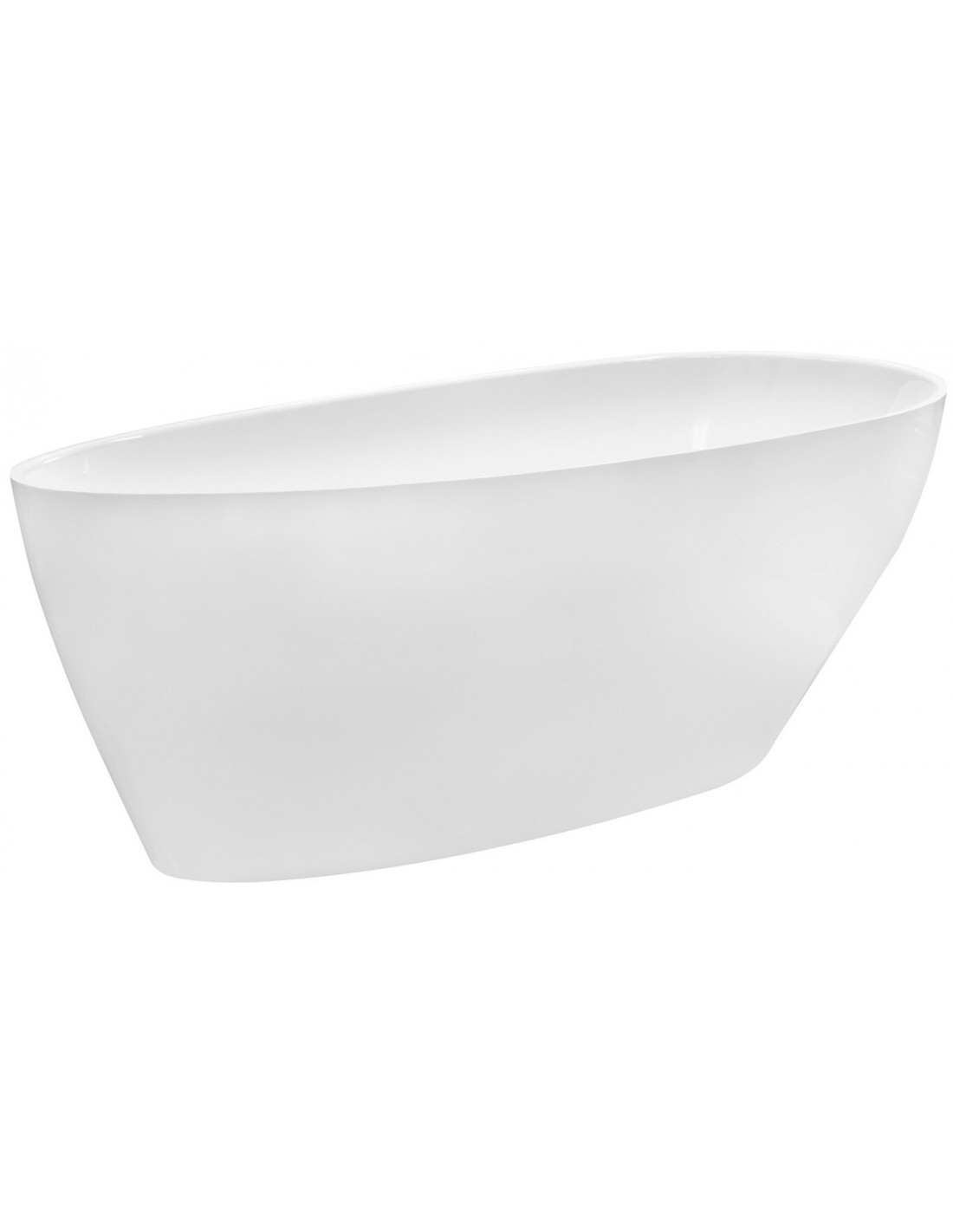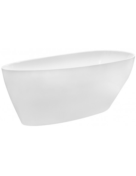 GOYA fritstående badekar i et moderne og stilrent design, fremstillet i blank hvid mineralsten. Badekaret måler 142 cm i længden og 62 cm i bredden (ydermål). Badekaret er uden overløb men med pop-up bundventil i kromlakeret stål/messing.