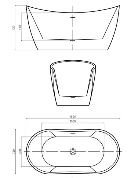 PRESENA fritstående badekar i et moderne og stilrent design, fremstillet i blank hvid premium akryl. Badekaret måler 150 cm i længden og 72 cm i bredden (ydermål). Badekaret har overløb samt pop-up bundventil i kromlakeret stål/messing.