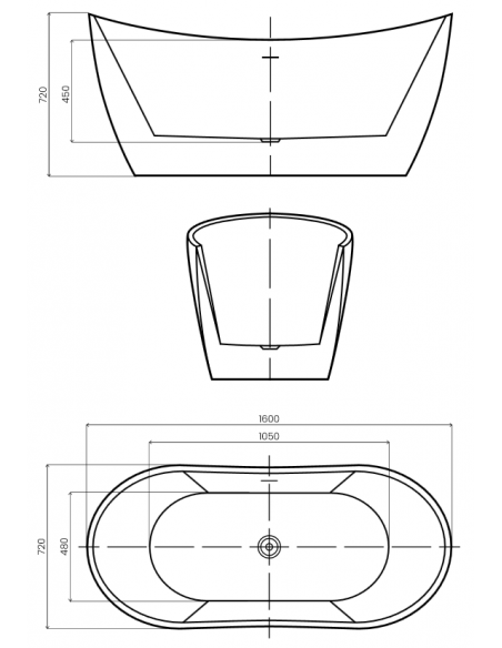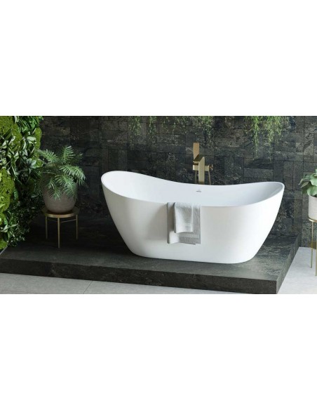 PRESENA fritstående badekar i et moderne og stilrent design, fremstillet i blank hvid premium akryl. Badekaret måler 160 cm i længden og 72 cm i bredden (ydermål). Badekaret har overløb samt pop-up bundventil i kromlakeret stål/messing.