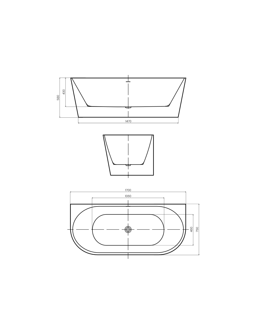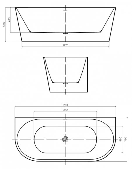 GAULI fritstående væg badekar i et moderne og stilrent design, fremstillet i blank hvid premium akryl. Badekaret måler 170 cm i længden og 75 cm i bredden (ydermål). Badekaret har overløb samt pop-up bundventil i kromlakeret stål/messing.