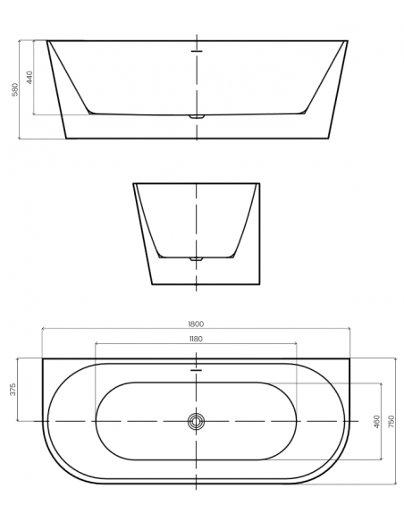 GAULI fritstående væg badekar i et moderne og stilrent design, fremstillet i blank hvid premium akryl. Badekaret måler 180 cm i længden og 75 cm i bredden (ydermål). Badekaret har overløb samt pop-up bundventil i kromlakeret stål/messing.