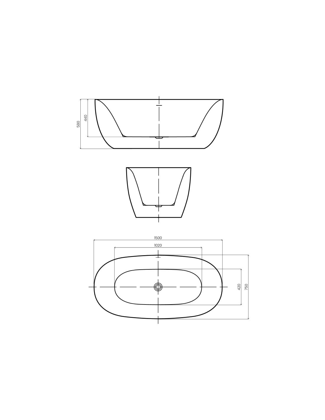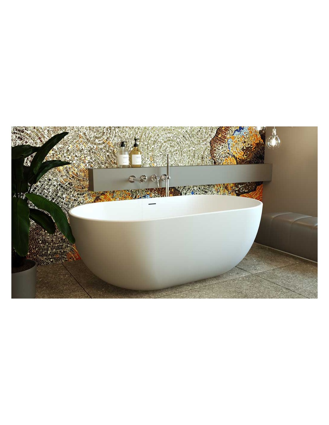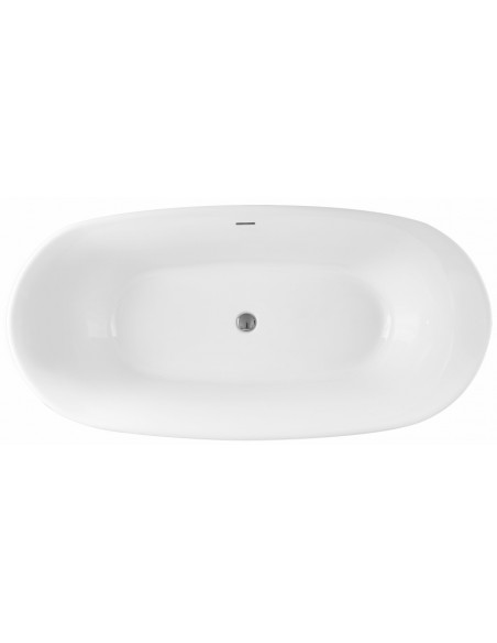 MALASPINA fritstående badekar i et moderne og stilrent design, fremstillet i blank hvid premium akryl. Badekaret måler 150 cm i længden og 75 cm i bredden (ydermål). Badekaret har overløb samt pop-up bundventil i kromlakeret stål/messing.