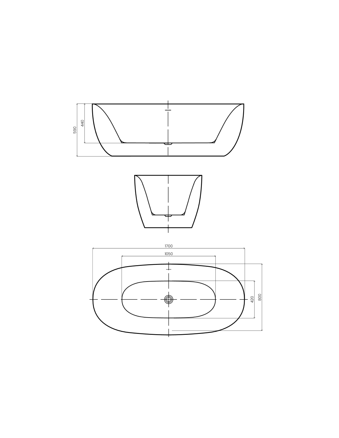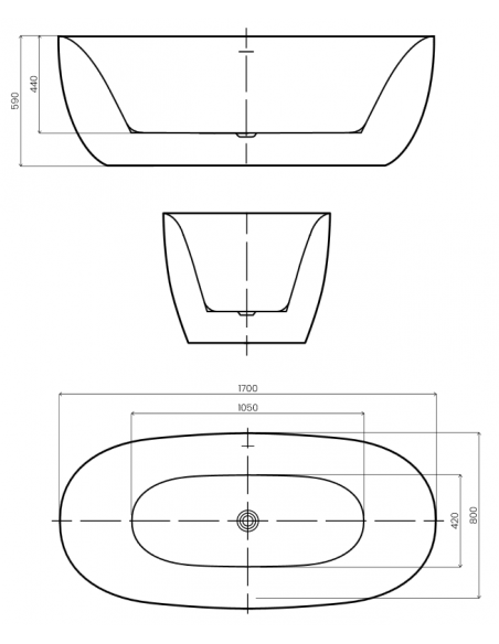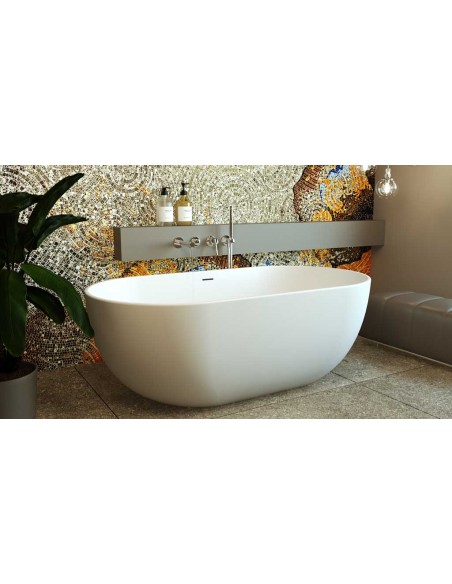 MALASPINA fritstående badekar i et moderne og stilrent design, fremstillet i blank hvid premium akryl. Badekaret måler 170 cm i længden og 80 cm i bredden (ydermål). Badekaret har overløb samt pop-up bundventil i kromlakeret stål/messing.