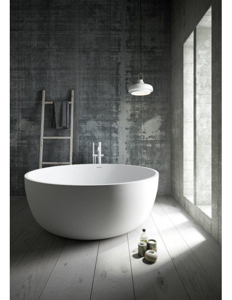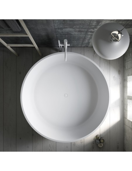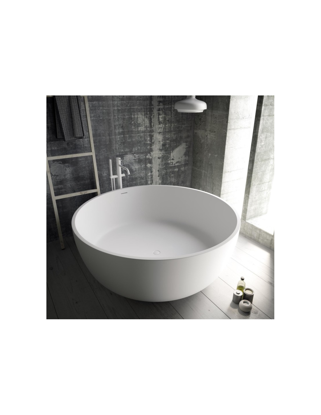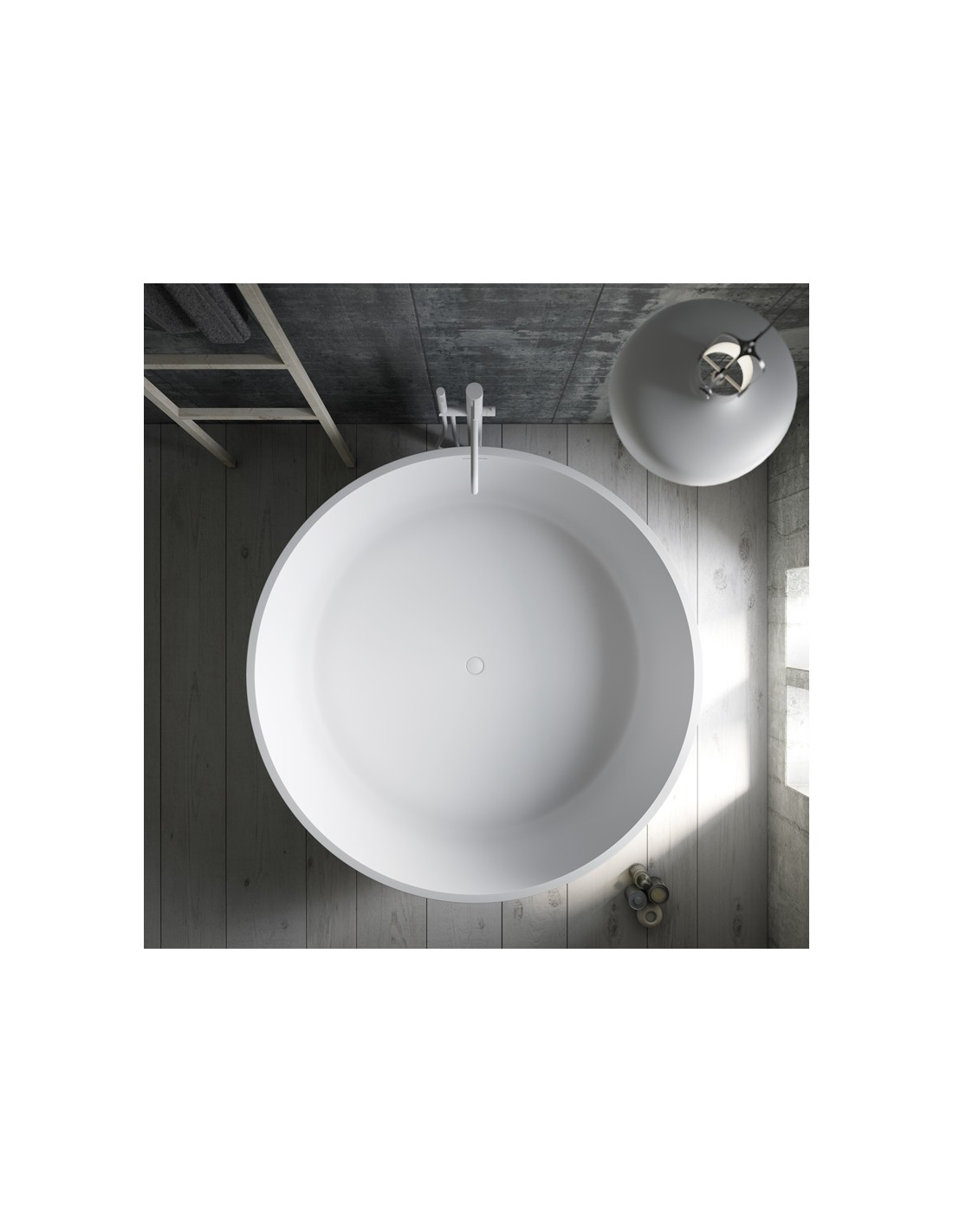 ARAL fritstående rundt badekar Ø150 cm Solid surface - Mat hvid