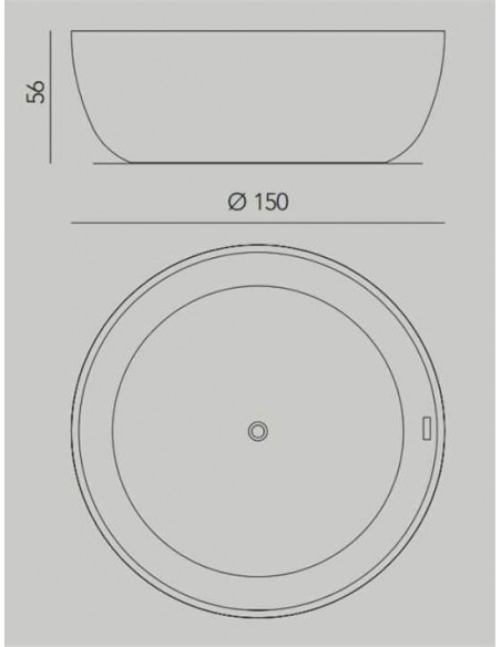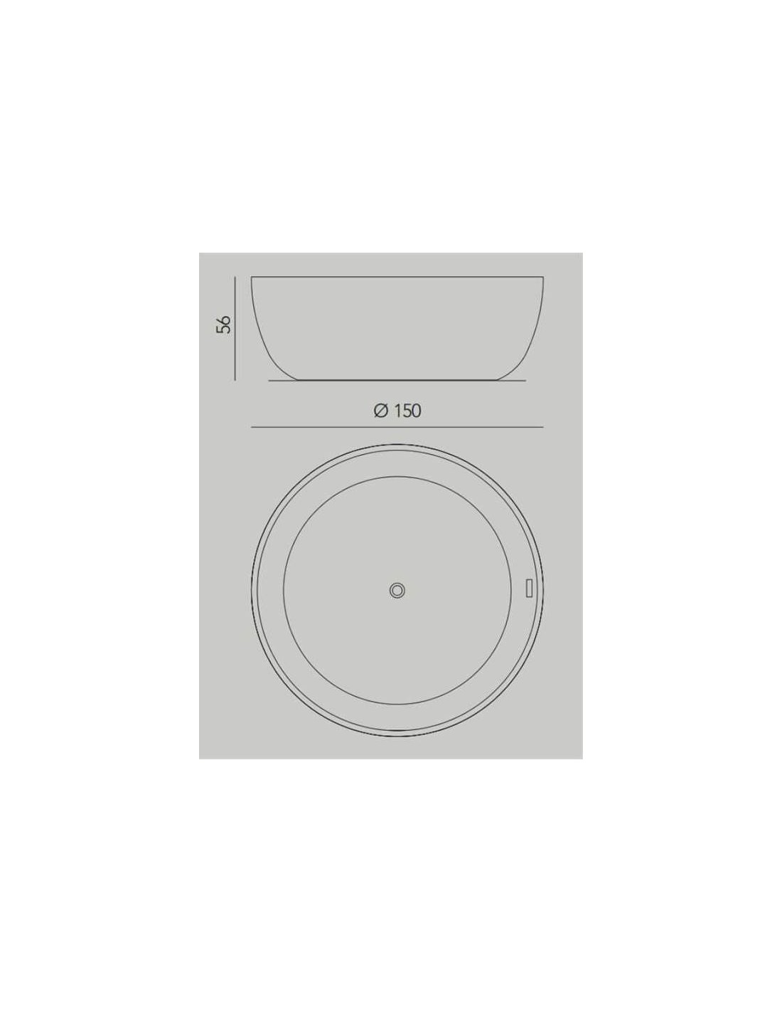 Rundt fritstående badekar udført i et design fremstillet i det solide materiale "Corian Solid Surface", der ikke alene giver badeværelset et stilrent design, men samtidig er lækkert at røre ved. Badekaret måler 150 cm i diameter og 56 cm i højden (ydermål). Leveres med pop-up bundventil med cover og bundventil.