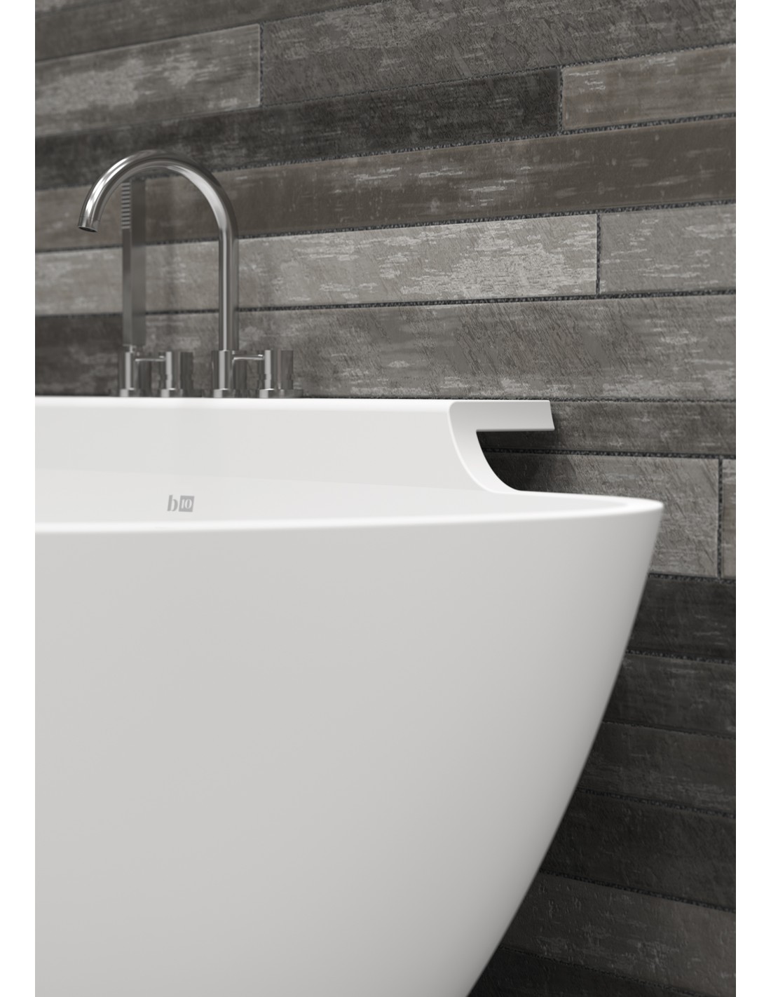 Fritstående badekar udført i et design fremstillet i det solide materiale "Corian Solid Surface", der ikke alene giver badeværelset et stilrent design, men samtidig er lækkert at røre ved. Badekaret måler 180 x 82 / 88 cm i bredde og dybde og 56 / 63 cm i højden (ydermål). Leveres med pop-up bundventil med cover og bundventil.