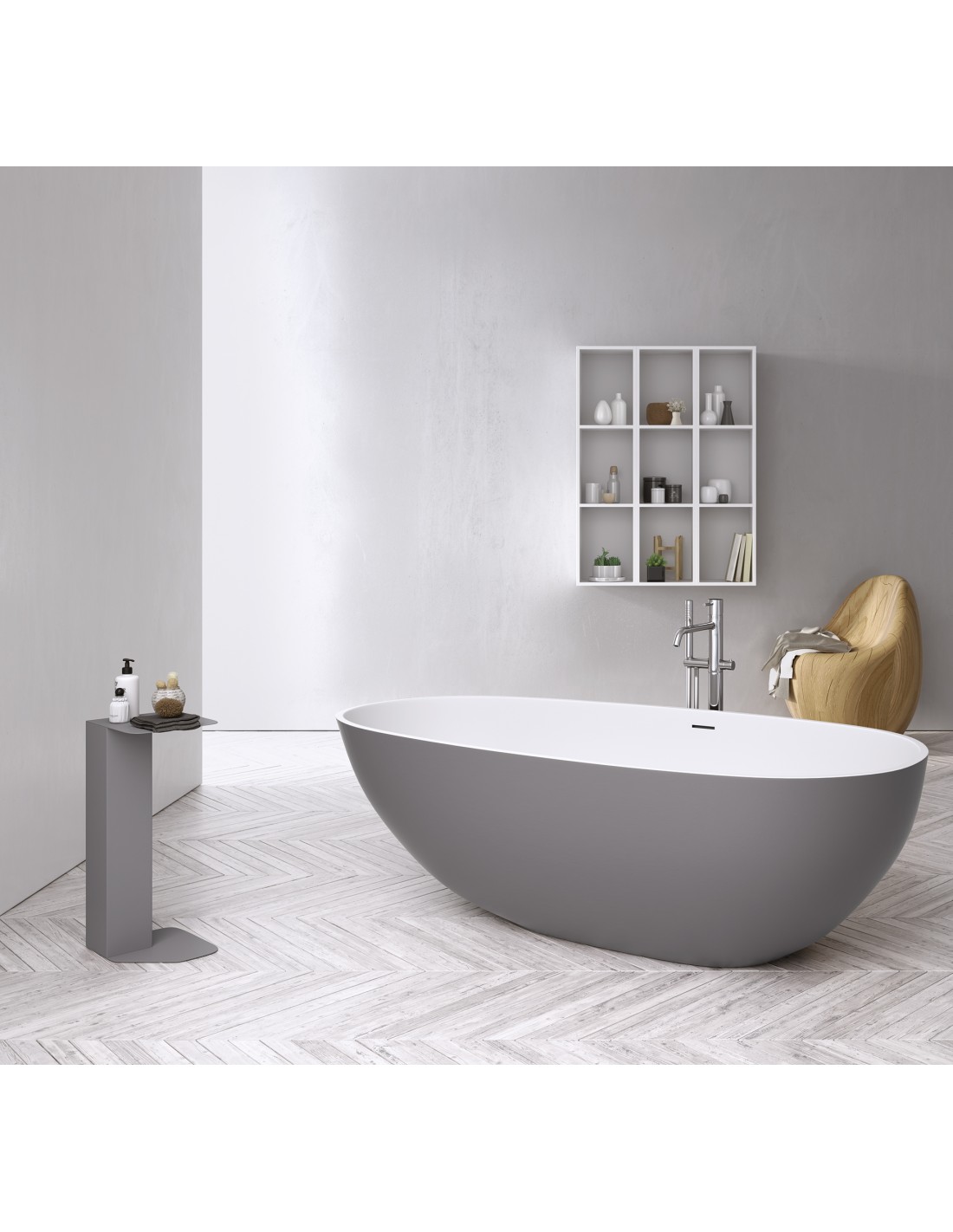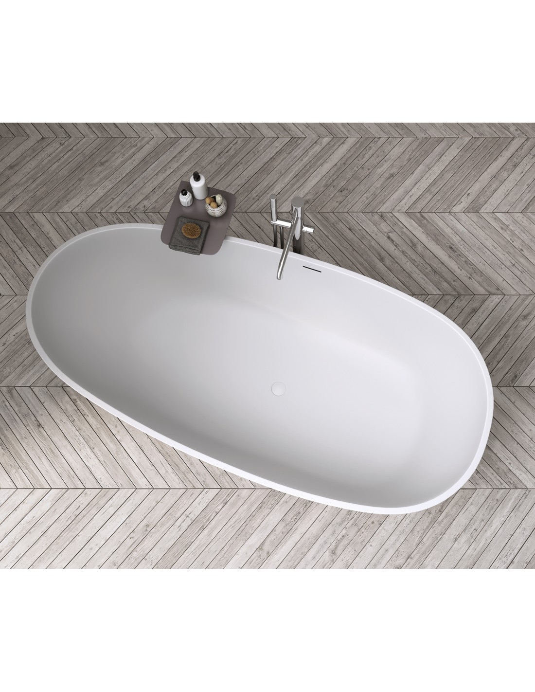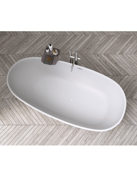 TAY fritstående badekar 185 x 85 cm Solid surface - Mat lysegrå
