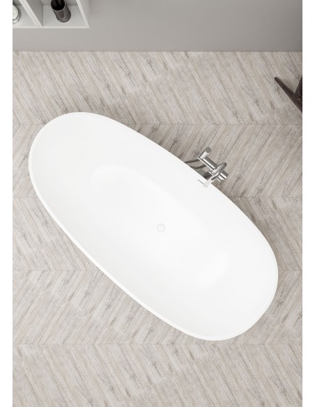 Fritstående badekar udført i et design fremstillet i det solide materiale "Corian Solid Surface", der ikke alene giver badeværelset et stilrent design, men samtidig er lækkert at røre ved. Badekaret måler 185 x 85 cm i bredde og dybde og 57 cm i højden (ydermål). Leveres med pop-up bundventil med cover og bundventil.