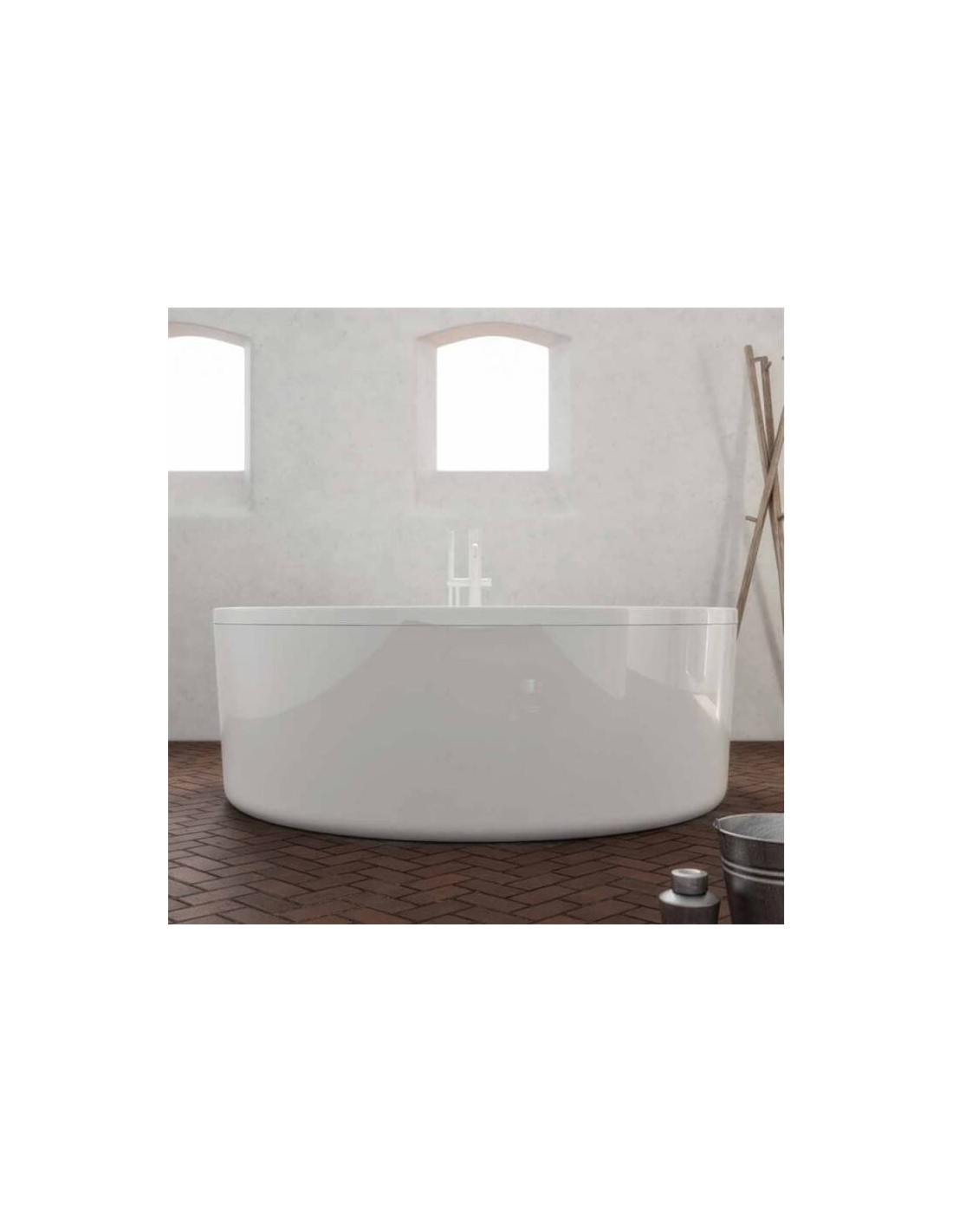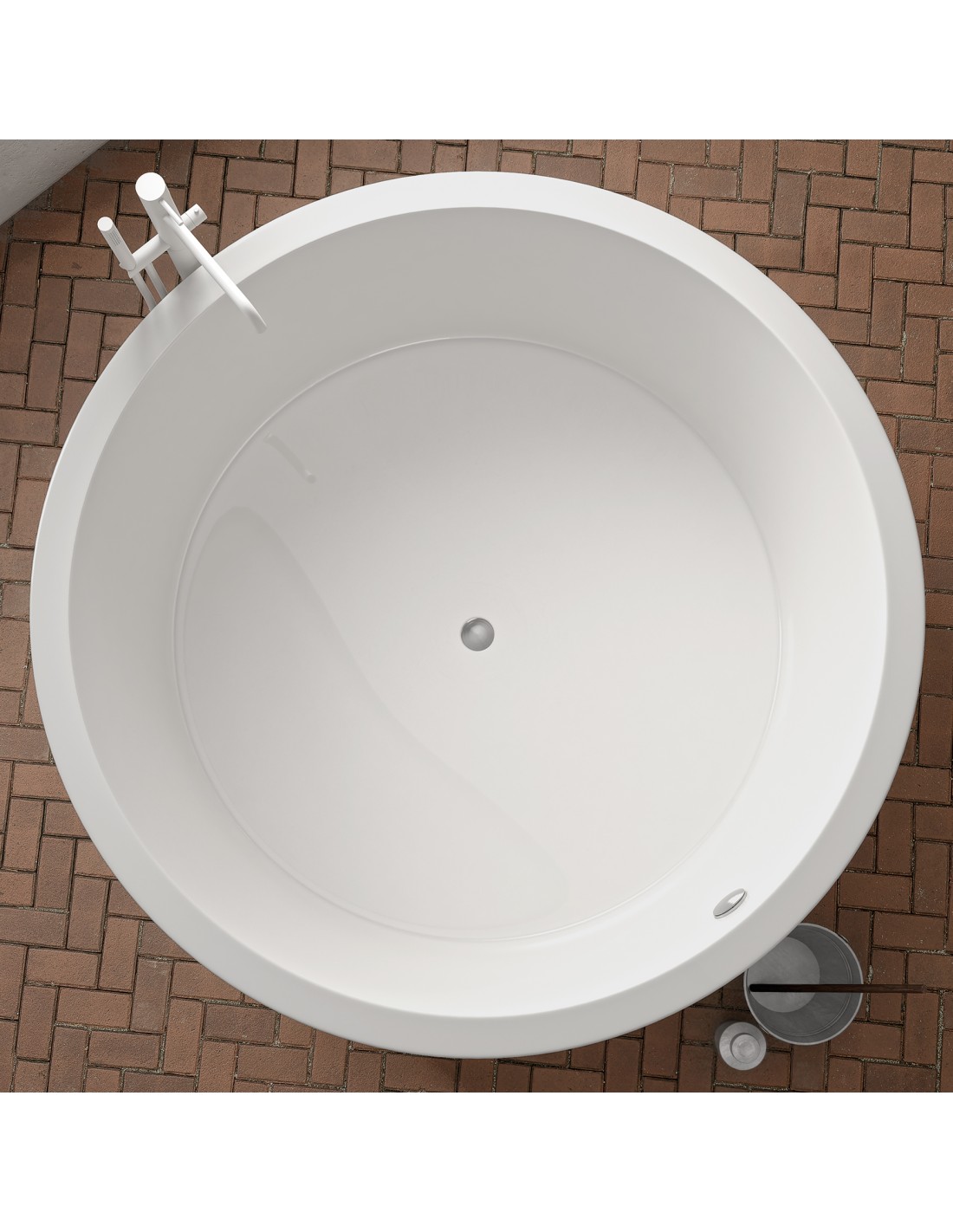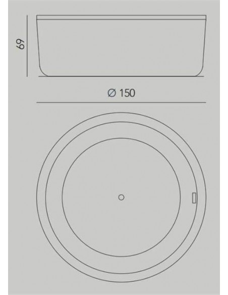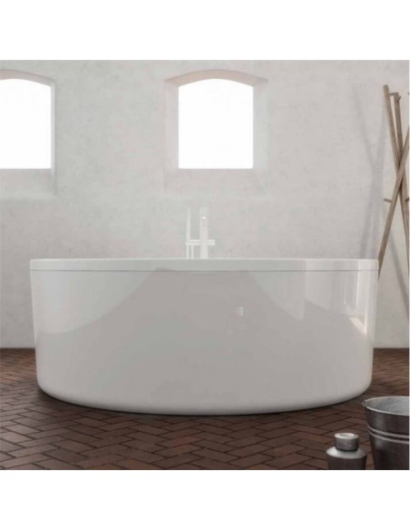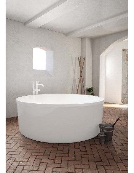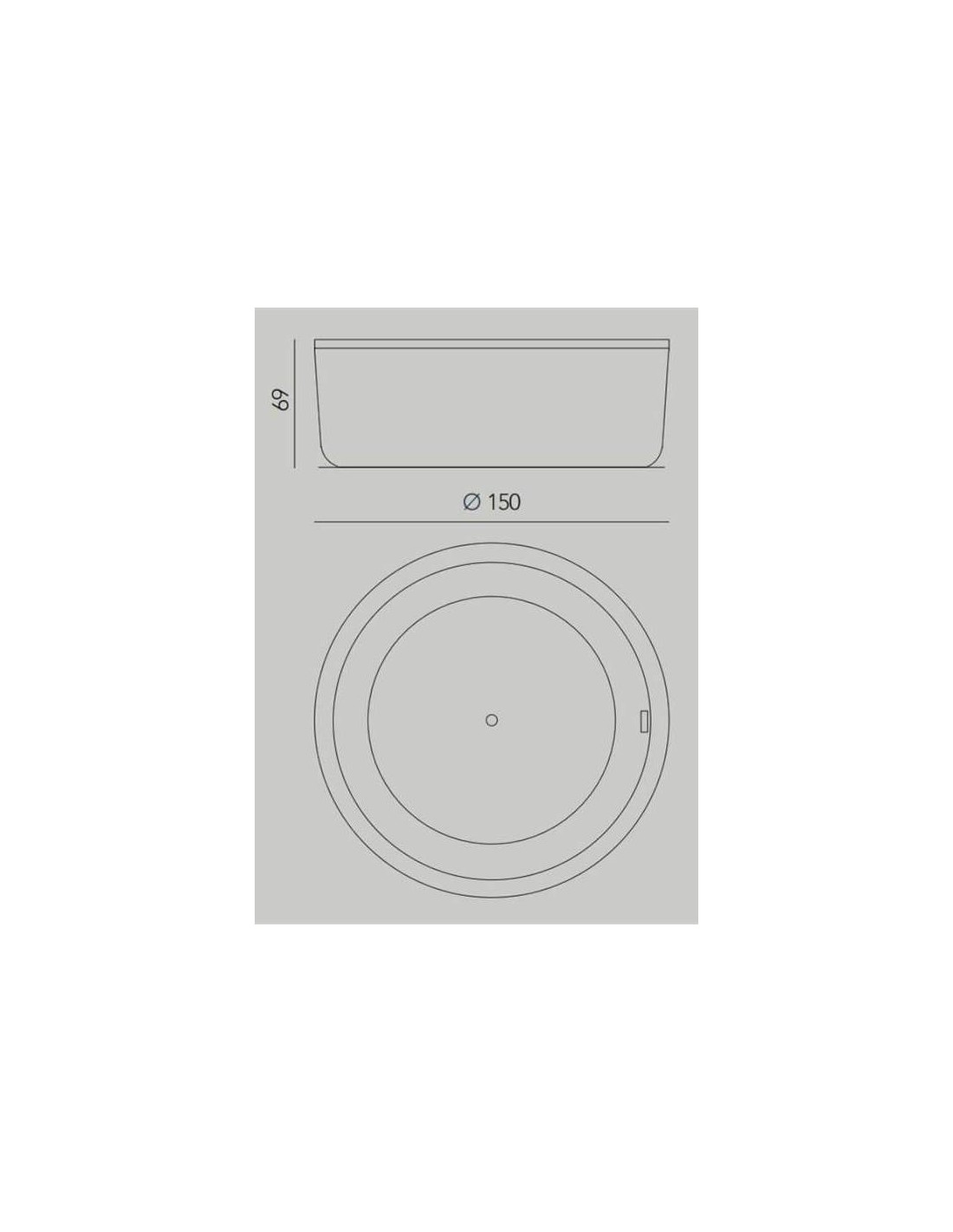 Rundt fritstående badekar udført i et design fremstillet i et moderne design af akryl. Badekaret måler 150 cm i diameter og 69 cm i højden (ydermål). Leveres med pop-up bundventil.