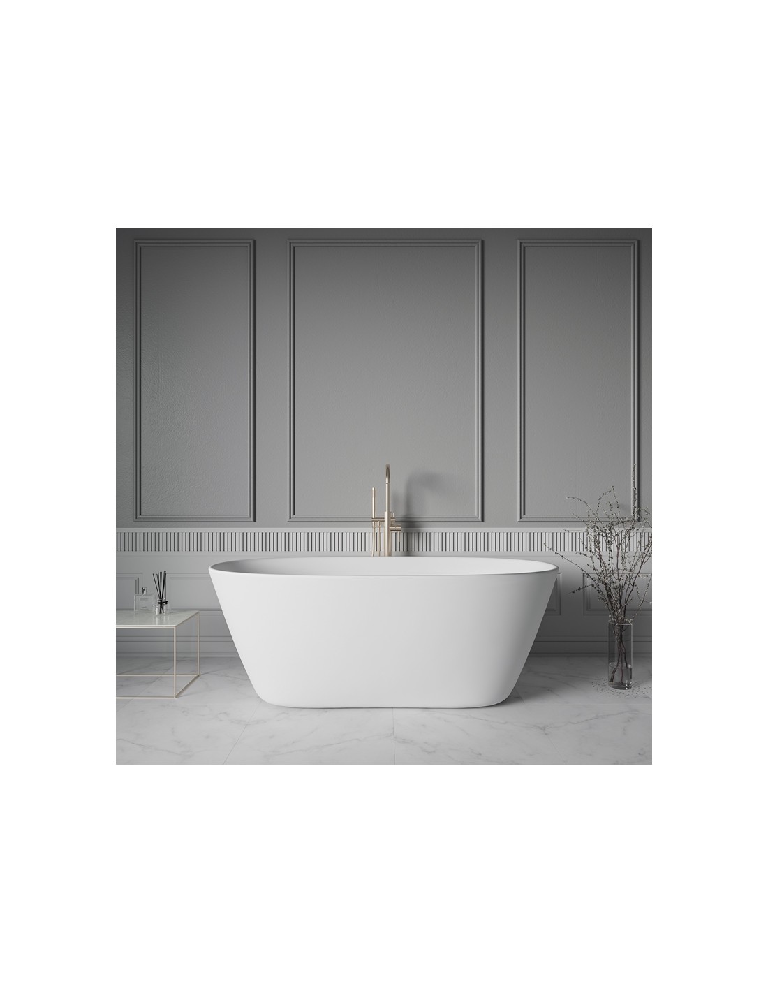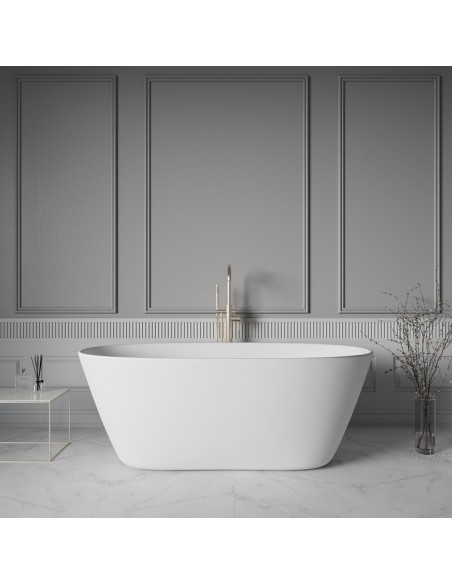 BORGHESE fritstående badekar 170 x 80 cm solid surface - Satineret mat hvid