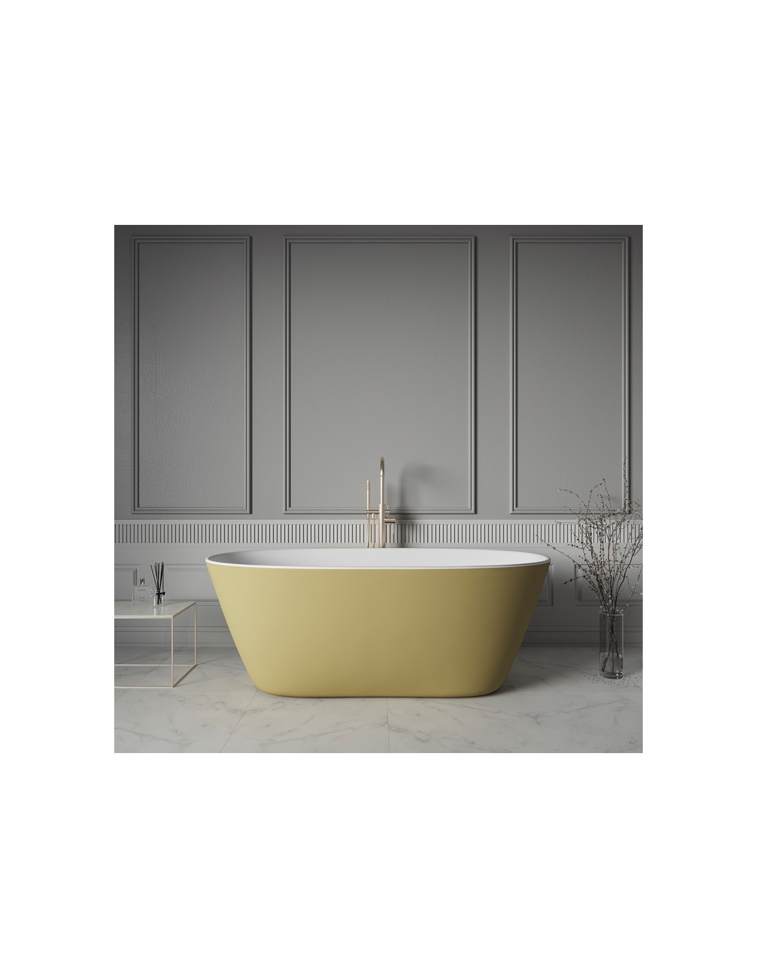 BORGHESE fritstående badekar 170 x 80 cm solid surface - Oliven/Mat hvid