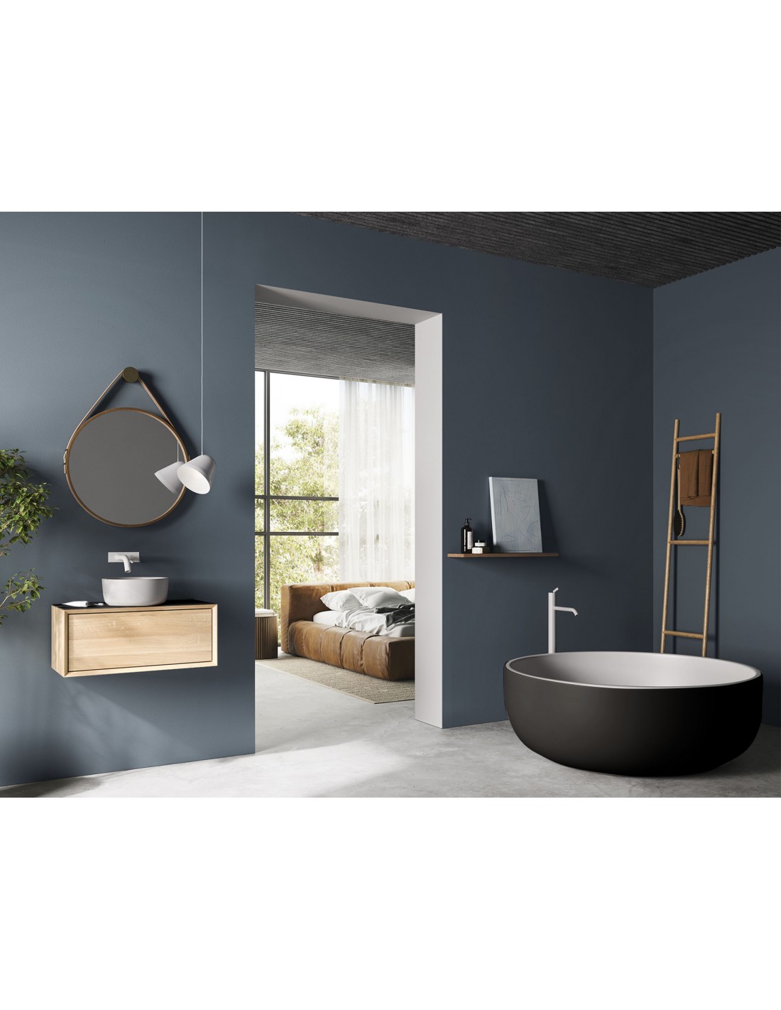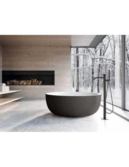 Biona fritstående badekar Ø135 cm Senstone - Mat hvid/Gråsort
